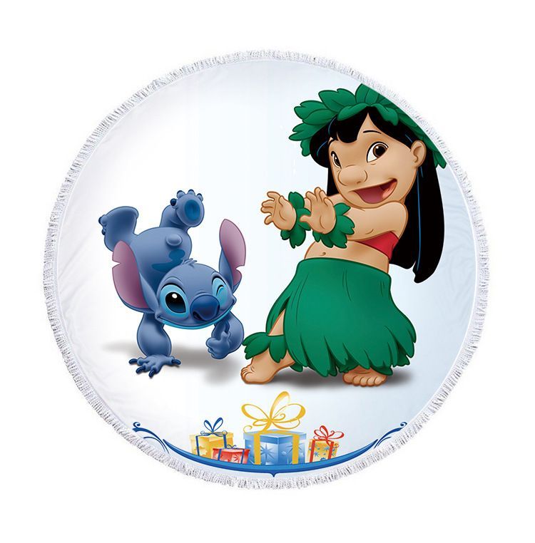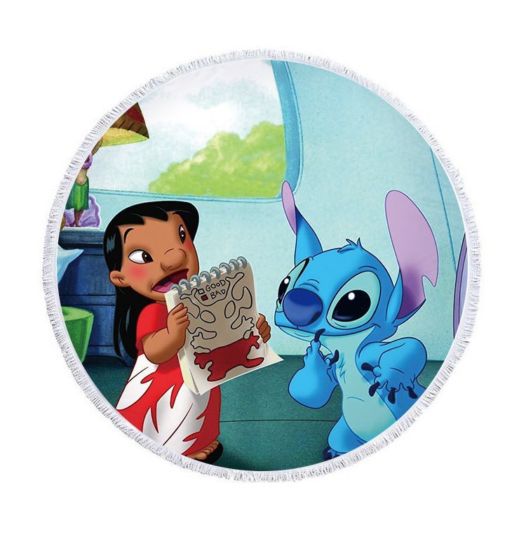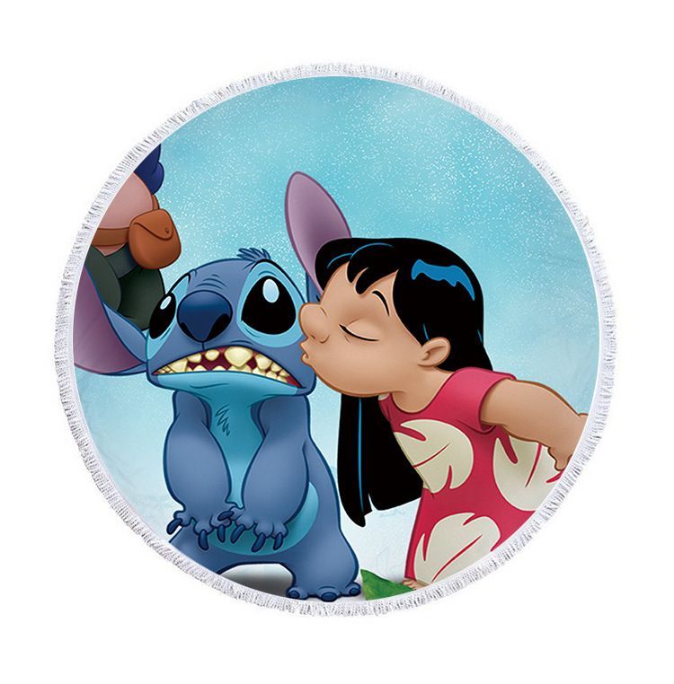 Cute Lilo & Stitch Runde Strandmatte Matratzen Strandtücher Decke Fransen Yogamatte