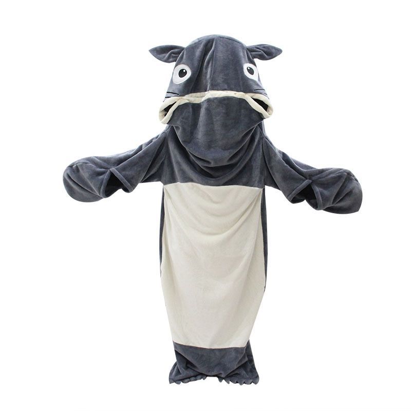 Cute Totoro Schlafsack Flanell Decke Kinder Kapuze Pyjama mit Ärmeln Outdoor Camping