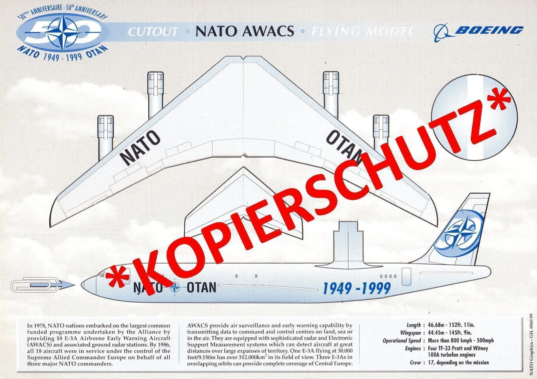 Cutout Papier-Bastelbogen Boeing NATO AWACS Flying Model 1949-1999
