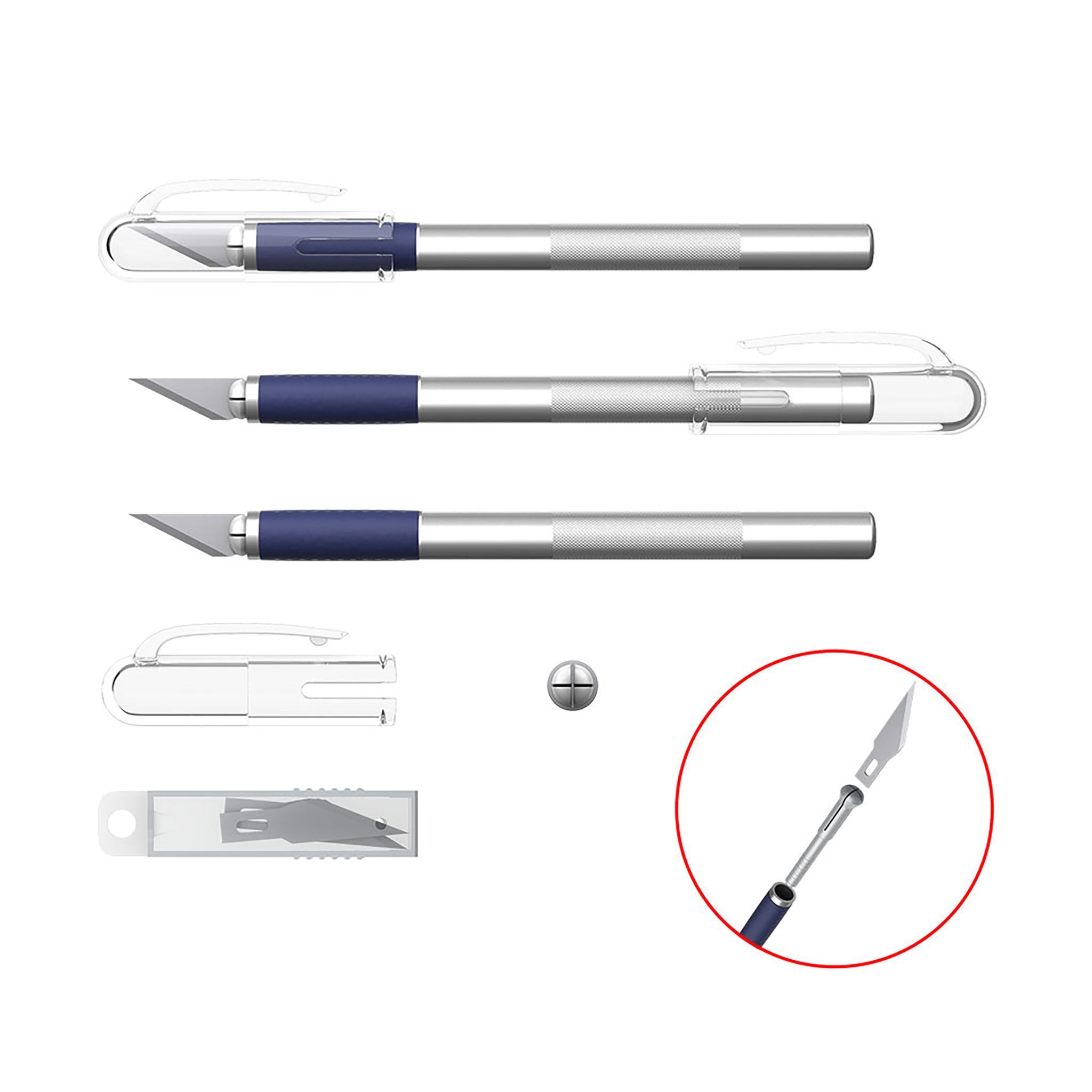 Cutter mit Ersatzklingen Skalpell Metallgehäuse 1 Stück Silber