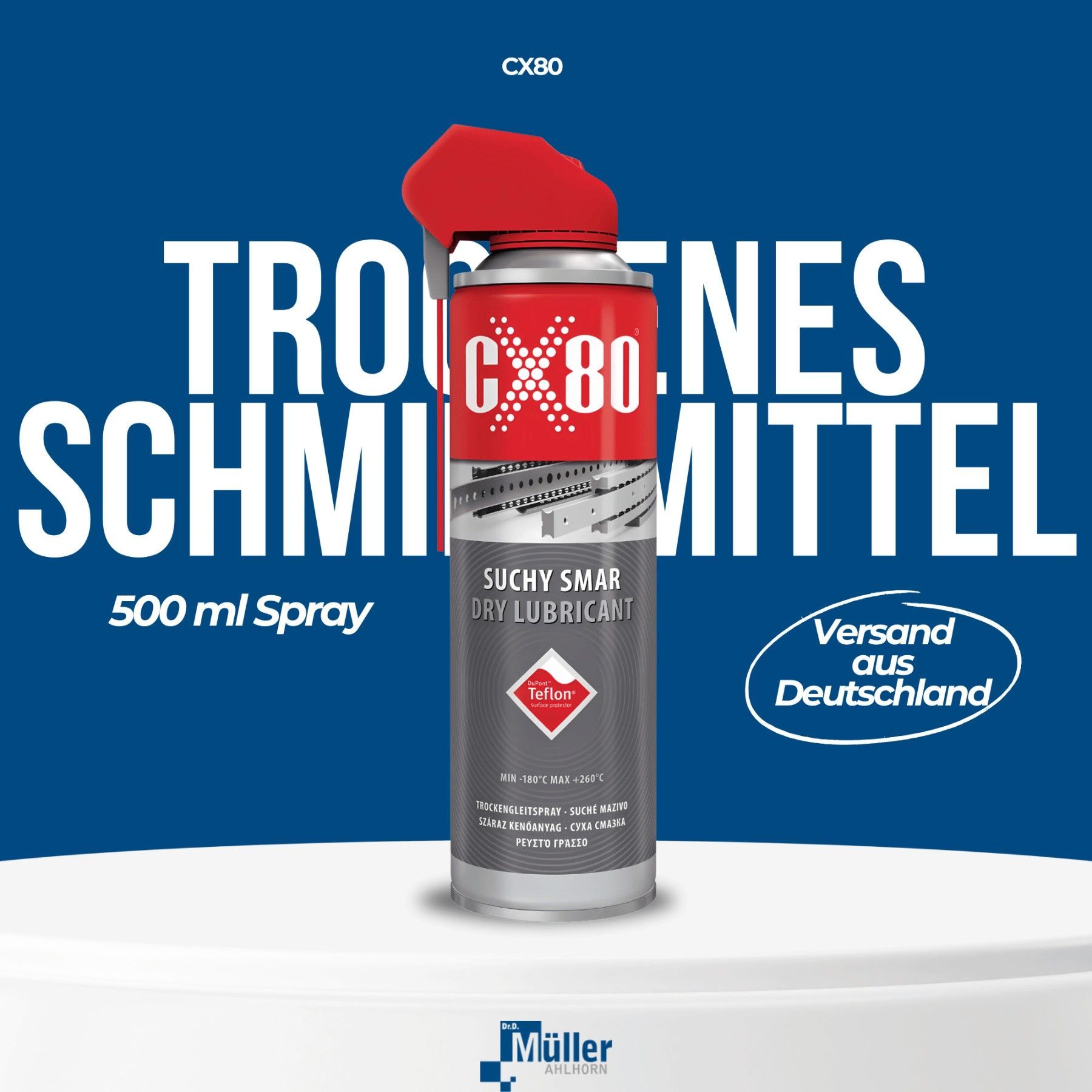 CX80 Teflon Trockenes Schmiermittel 500 ml Spray PTFE Gleit Schmierstoff Trocken