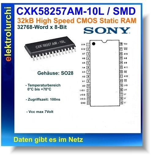 CXK58257AM-10L - 32768-Word x 8-Bit CMOS Static Ram, IC SO28, Sony, 1St.