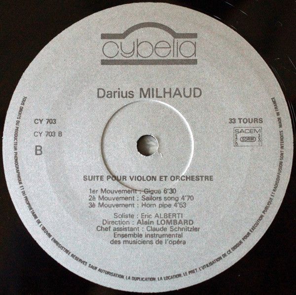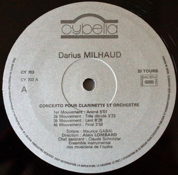 Cybelia CY 703 - Darius Milhaud - Concerto Pour Clarinette Et Orchestre / Suite