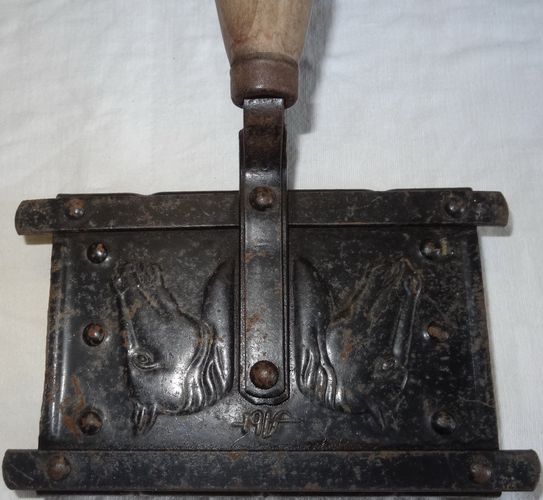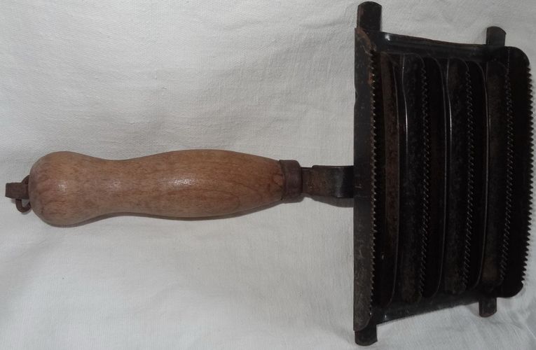 D Abt Striegel Tierstriegel Metall mit Holzgriff Alt Vintage 10x14 15,5x25 gut erhalt