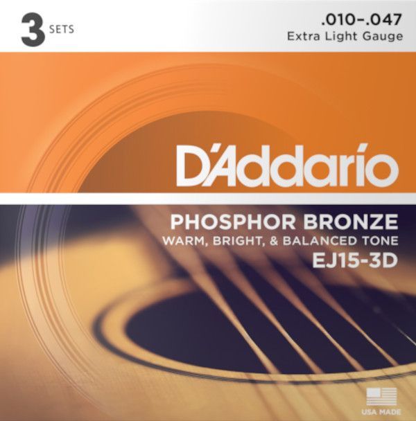 D'Addario EJ15-3D Phosphor Bronze - extra light (010-047) - 3-er Pack