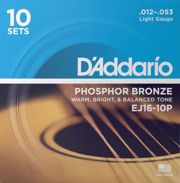 D'Addario EJ16-10P Phosphor Bronze - light (012-052) - 10-er Pack
