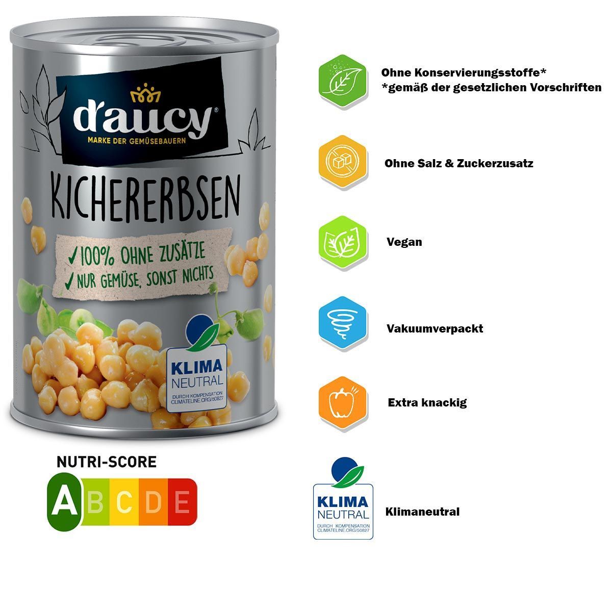 d'aucy Kichererbsen, 3x110g Dosen, ohne Salz & Zucker, ohne Konservierungsstoffe