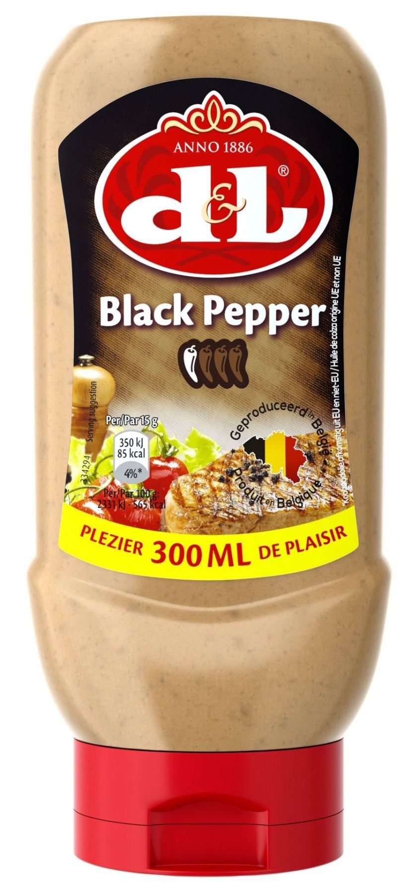 D&L Schwarze Pfeffer Sauce 3x 300ml Squeeze würzig-cremig Steak Burger Pommes Wraps