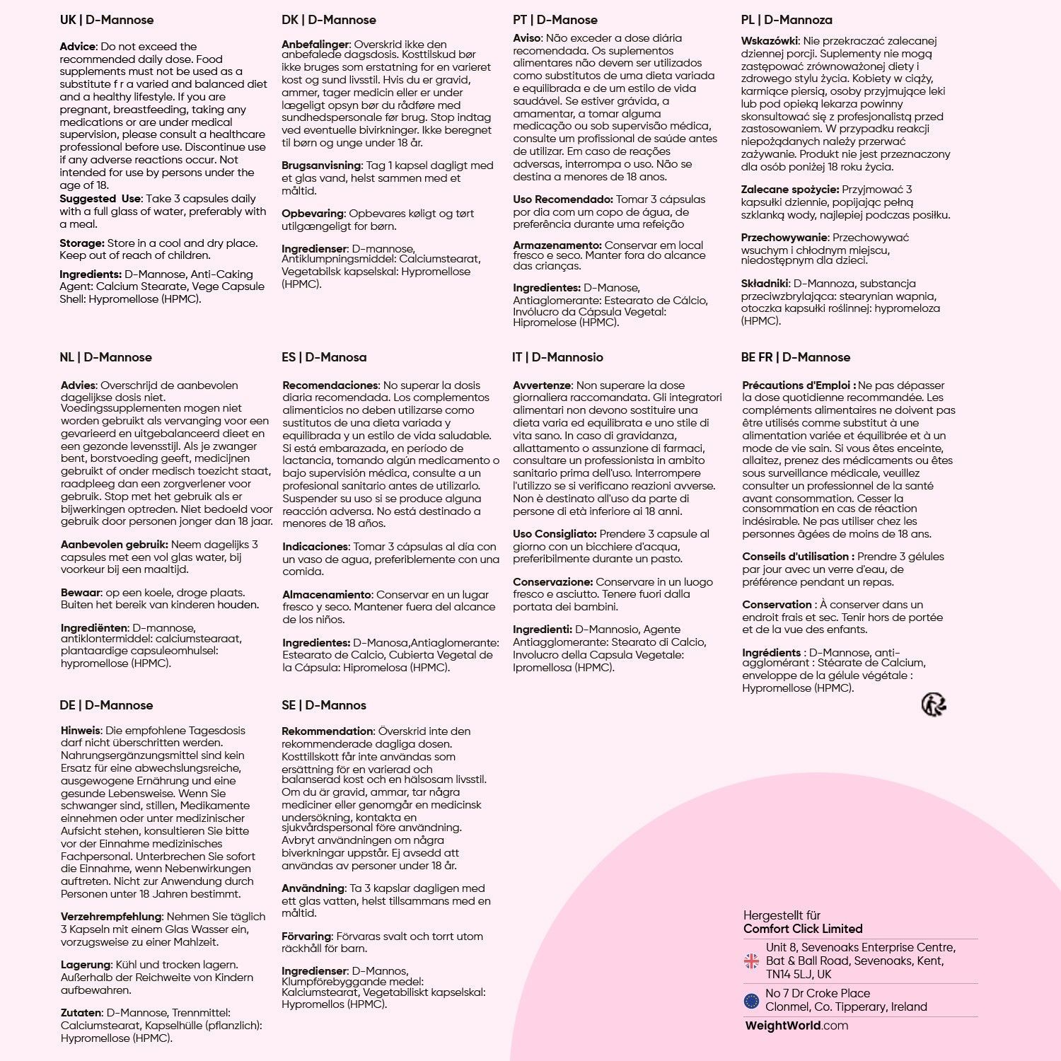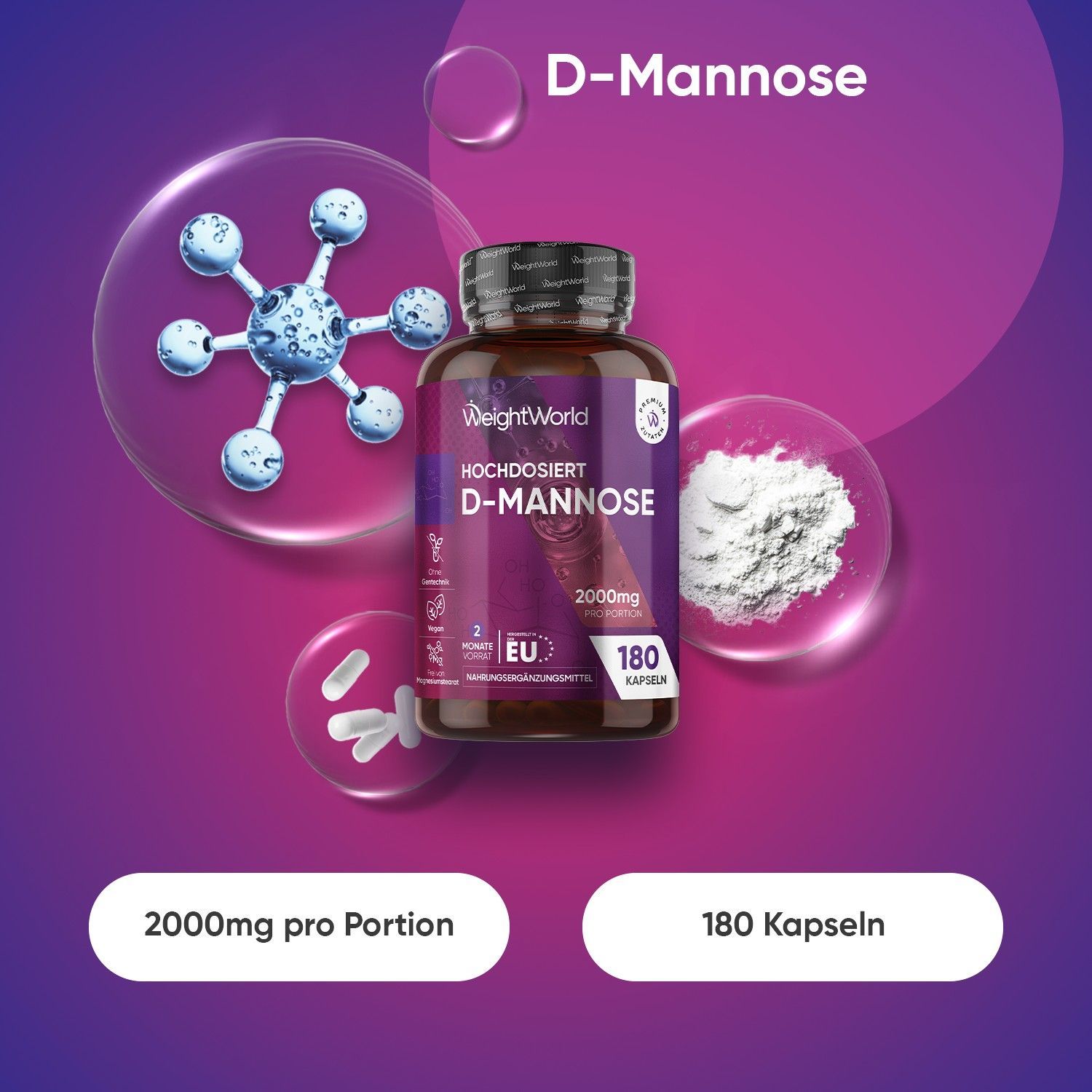 D-Mannose Kapseln - 2000mg pro Portion - 180 Mannose Stück - 3 Kapseln Täglich