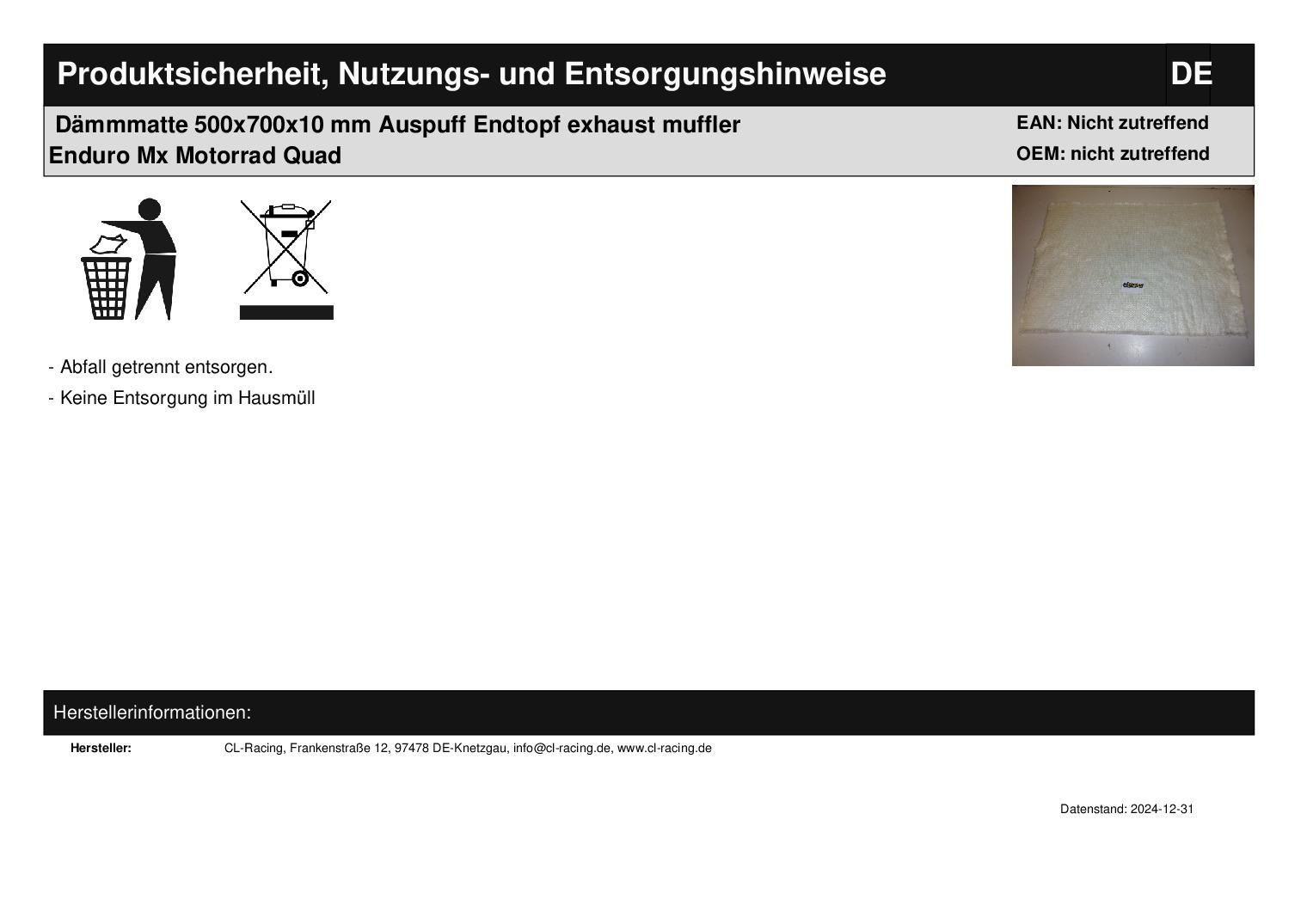D?mmmatte 500x700x10 mm Auspuff Endtopf exhaust muffler Enduro Mx Motorrad Quad