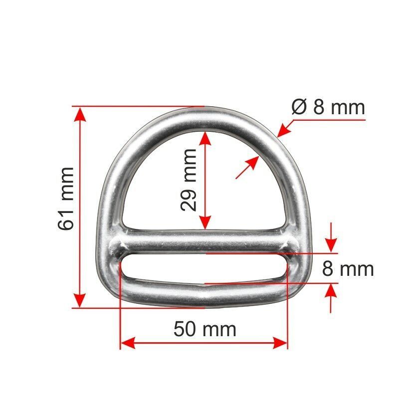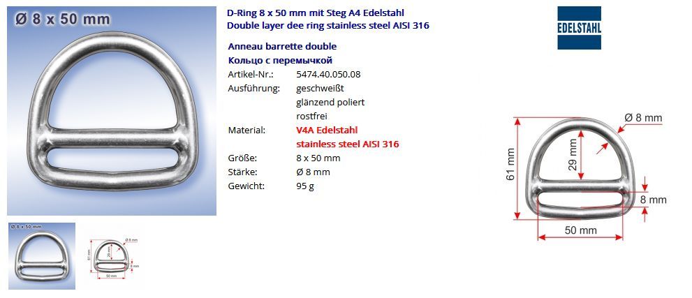D-Ring mit Steg 6 x 50 mm 8 x 50 mm A4 Edelstahl stainless steel AISI 316 NIRO