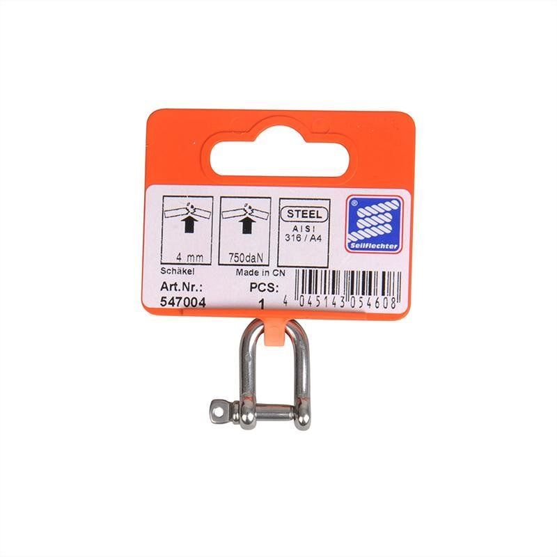 D-Schäkel 4mm, A4 RVS AISI 316, 750 daN