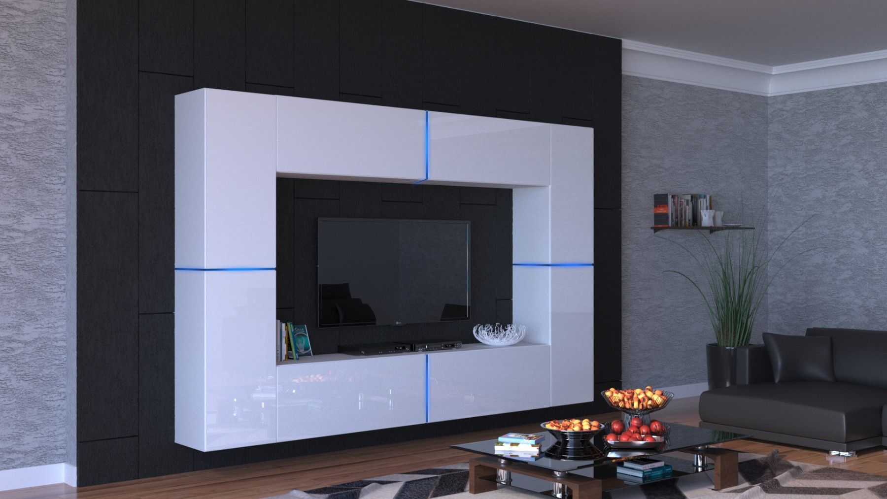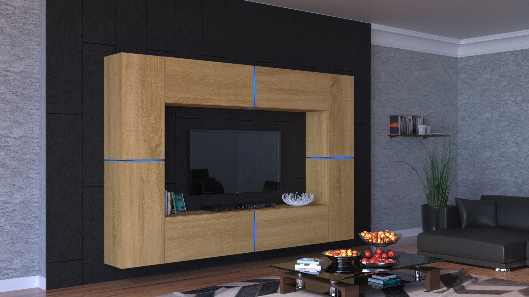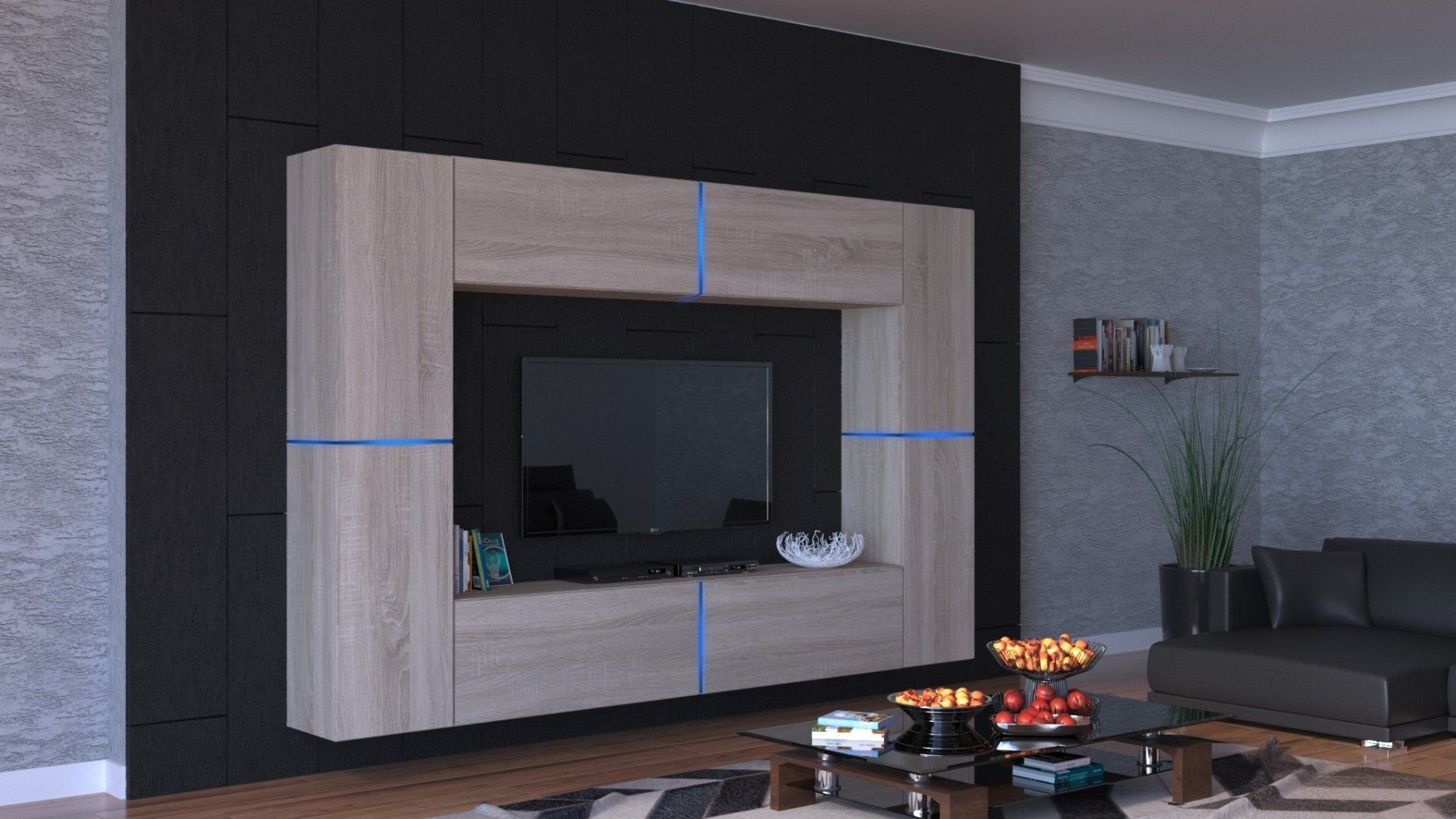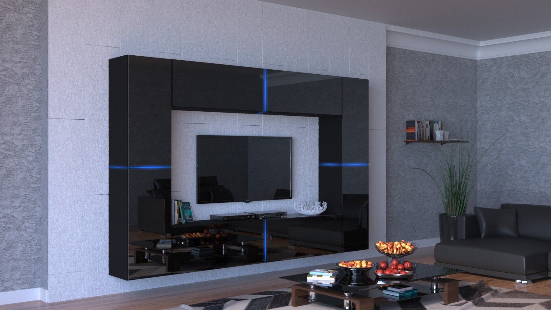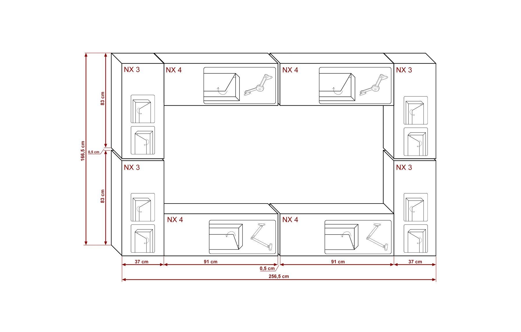 D23 256 cm Möbel Wohnzimmer Wohnwand Mediawand Wohnschrank Schrankwand Farbauswahl