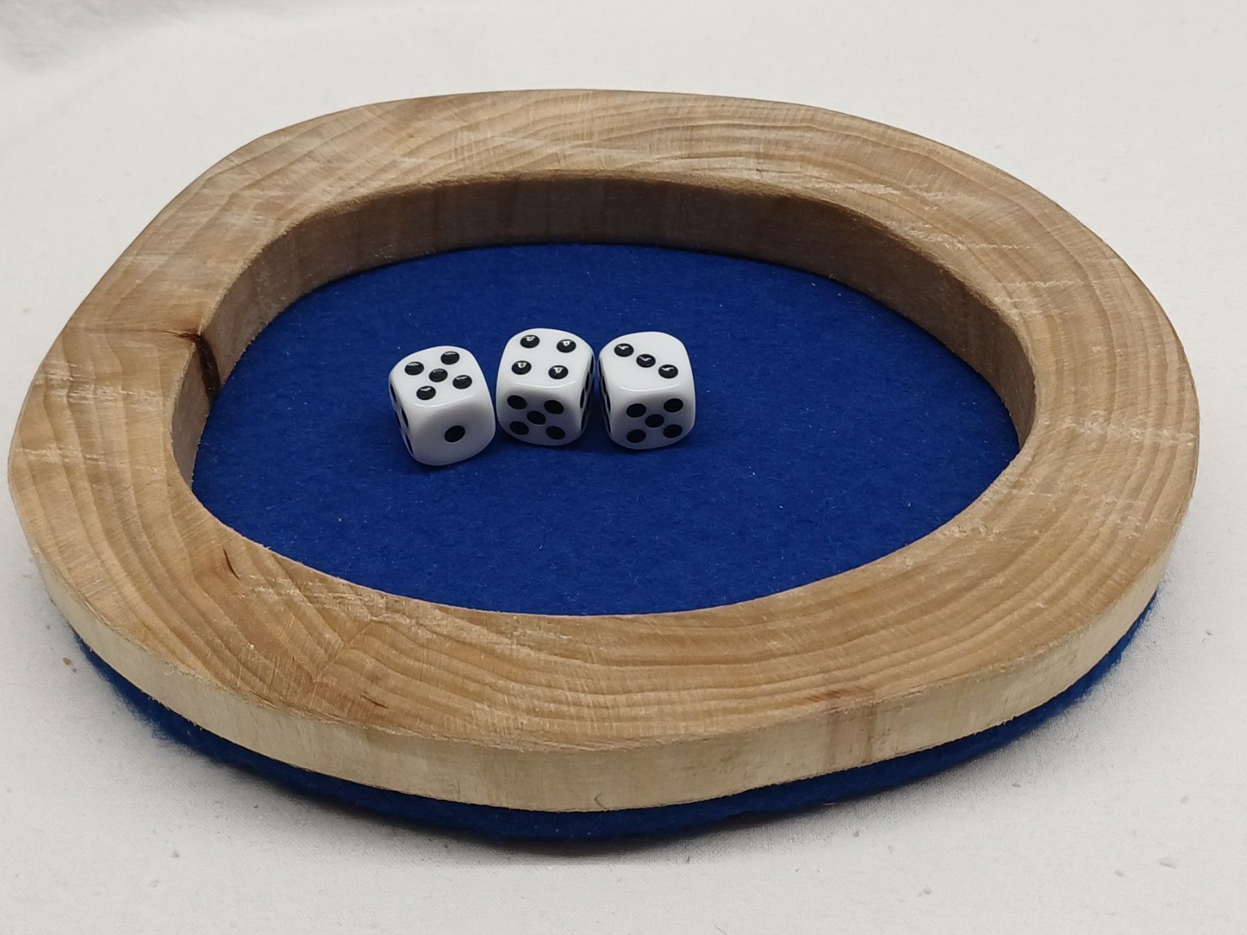 Würfelbrett - Würfelteller Material: Holz Größe: 20 cm x 16 cm Die Würfelfläche ist mit einem Filzbelag bezogen sowie die Unterseite inclusive 3 Würfel jeder Würfelteller wird in Handarbeit gefertigt und ist ein Unikat Achtung: Nicht für Kinder unter 3 Jahren geeignet. Ein Würfelbrett – auch W