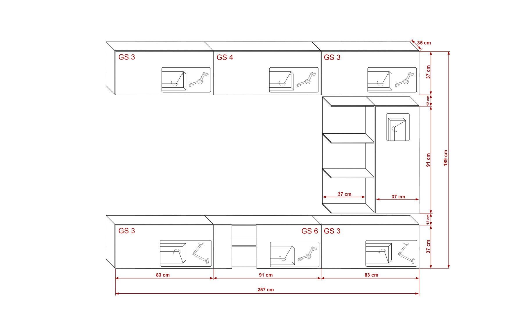 D99 257 cm Möbel Wohnzimmer Wohnwand Mediawand Wohnschrank Schrankwand Farbauswahl