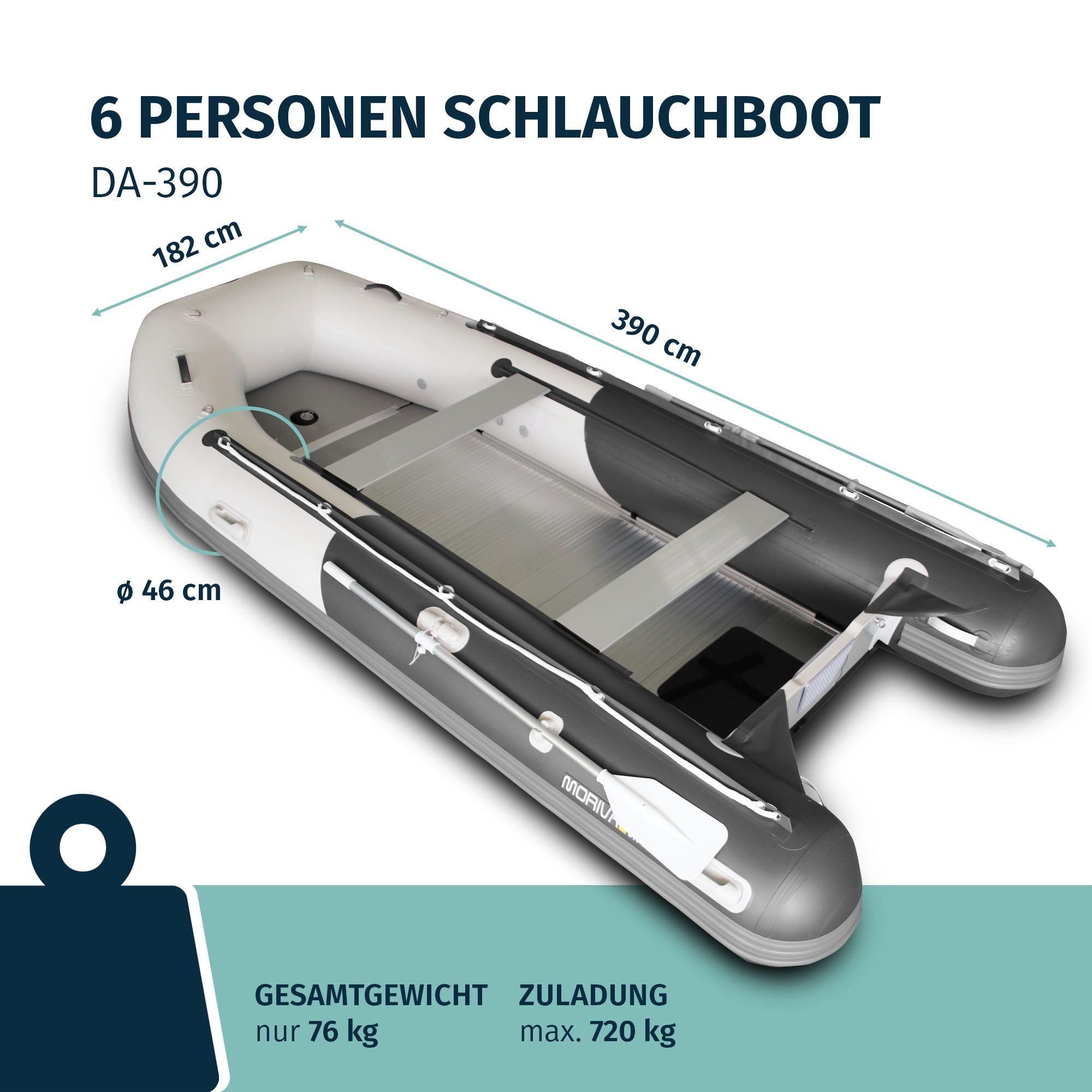 DA-390 Aufblasbares Schlauchboot, 390 cm, grau - dunkelgrau, Aluminiumboden, inkl