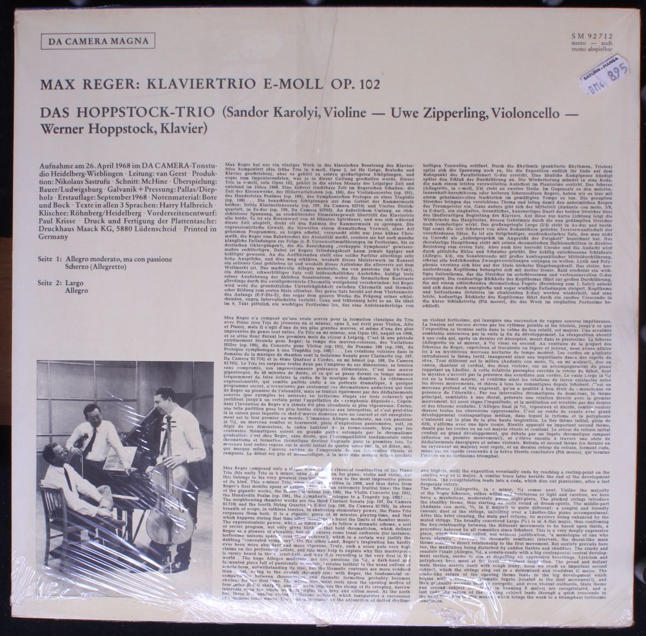 Da Camera Magna SM 92712 - Max Reger, Hoppstock Trio - Klaviertrio E-Moll Op. 10