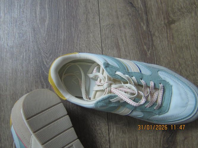 Der Turnschuh ist mit heller Sohle ,und einer rausnehmbaren Innensohle . Die größe ist 37 und neu Privatverkauf keine Rücknahme und keine Garantie