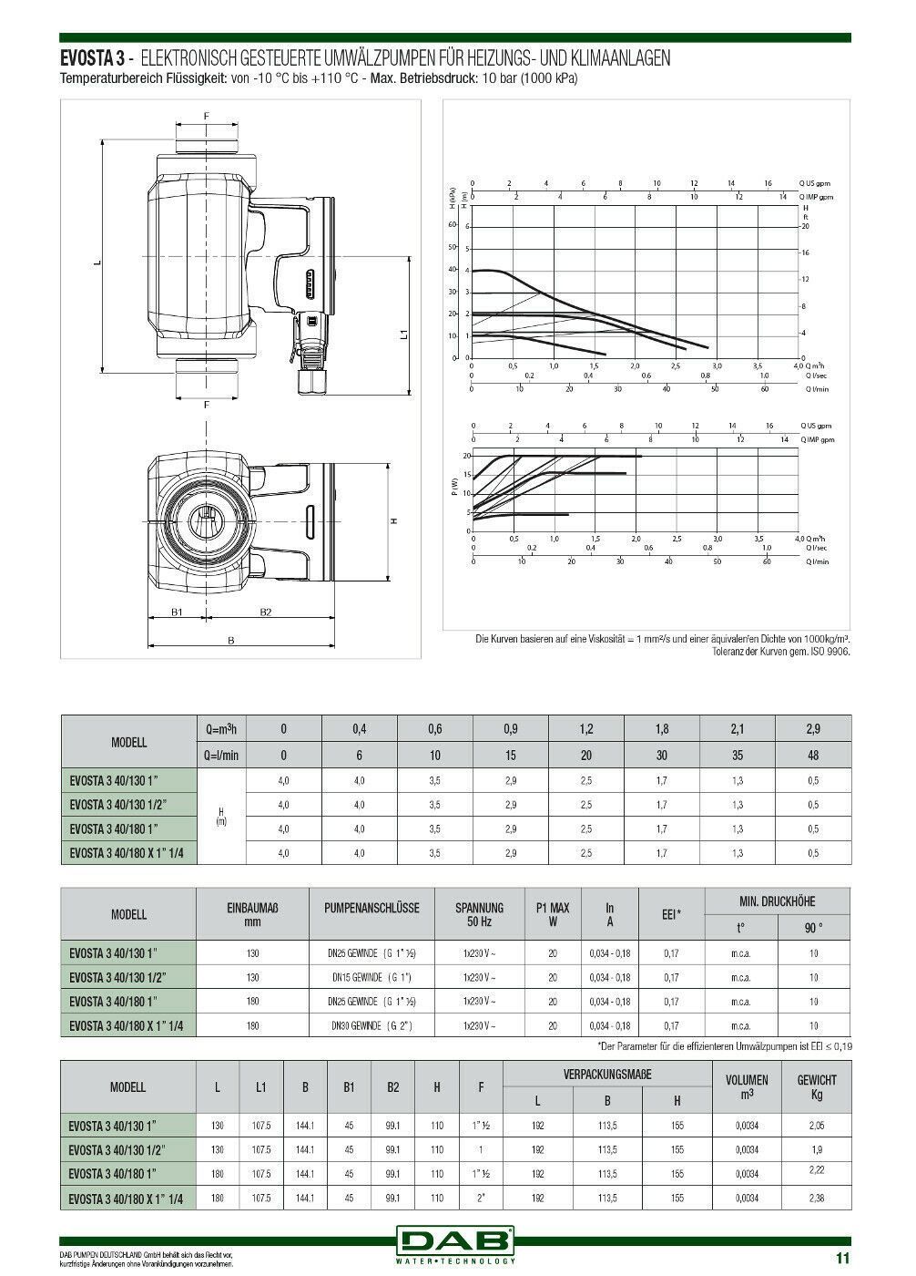 DAB EVOSTA3 25/40 180mm elektronisch geregelte Umwälzpumpe Nassläufer