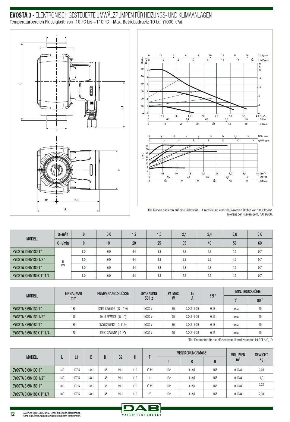 DAB EVOSTA3 25/60 130mm elektronisch geregelte Umwälzpumpe Nassläufer