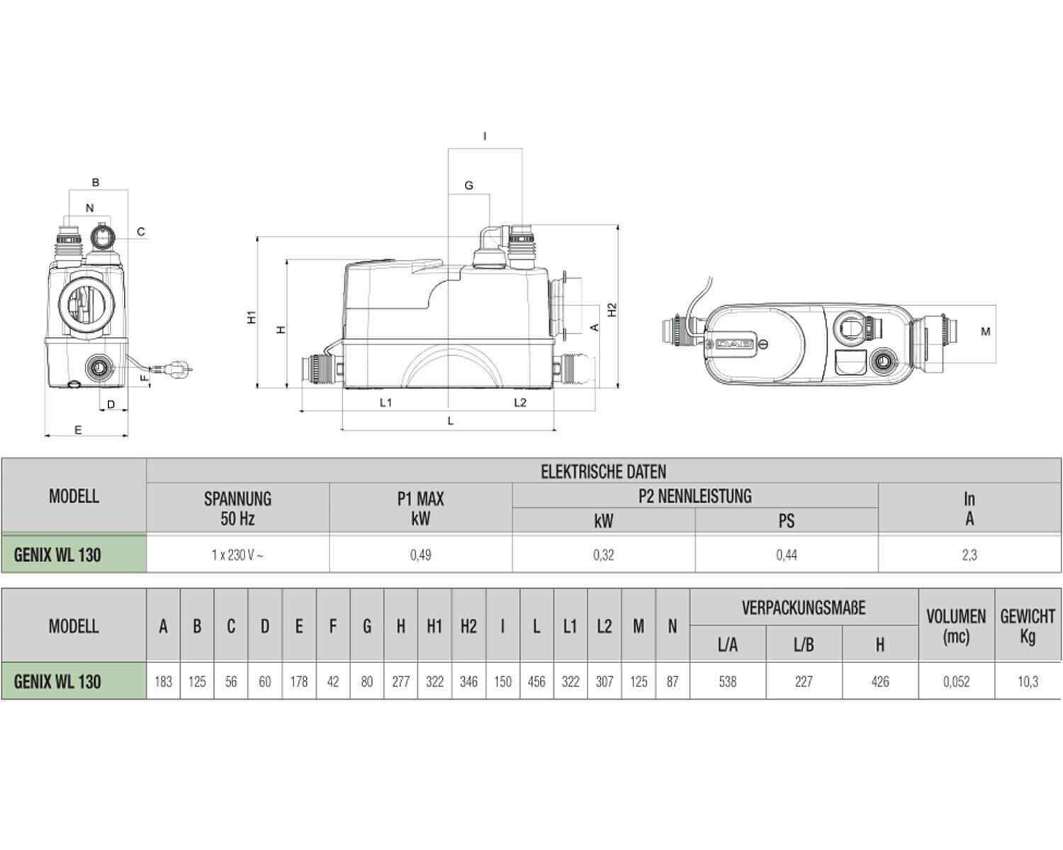 DAB Genix 130 WL Fäkalien WC Hebeanlage Kleinhebeanlage Abwasser Schmutzwasser