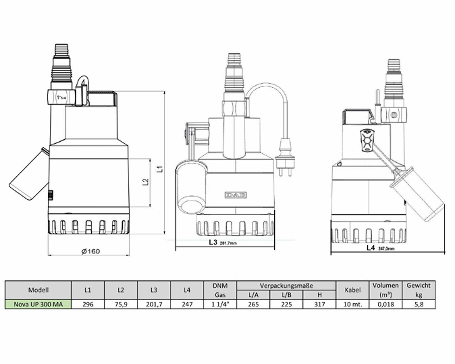DAB Tauchpumpe Nova UP M-A 10 m Drainagepumpe Schmutzwasserpumpe Schachtpumpe