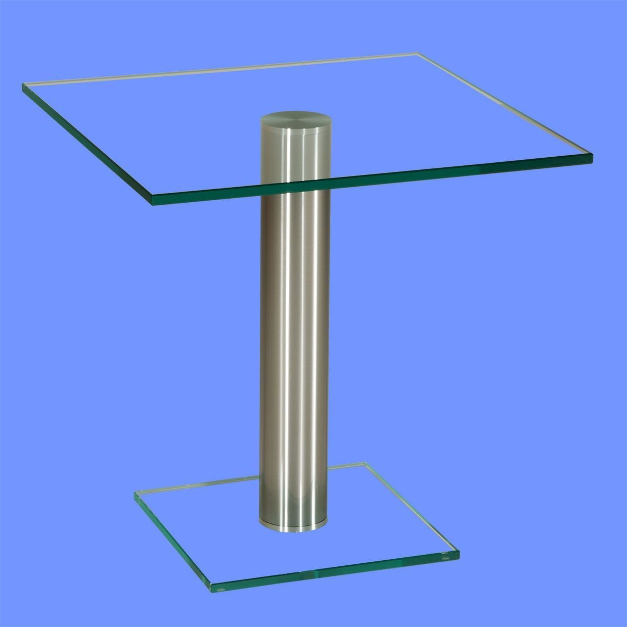 DAB1280 Couchtisch Klarglasplatte 50x50x50cm D80mm Chromsäule direkt ab Werk