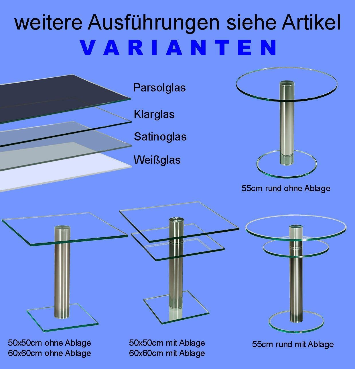 DAB2280 Couchtisch Parsolglasplatte 50x50x50cm D80mm Chromsäule direkt ab Werk