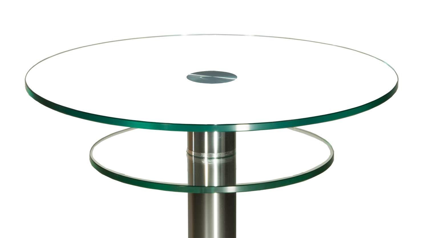 DAB3271 Couchtisch Weißglasplatte 55x55x54cm Ø Klarglasablage D80mm Chromsäule