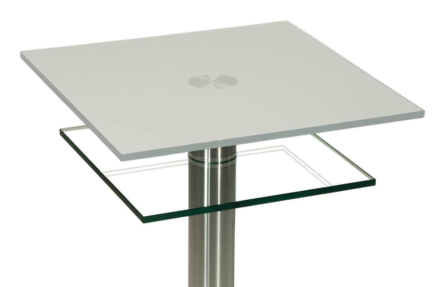 DAB4281 Couchtisch Satinoglasplatte 50x50x54cm Klarglasablage D80mm Chromsäule