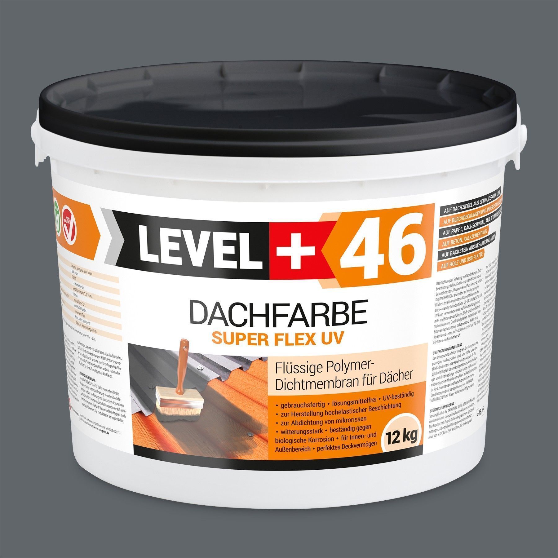 Dachfarbe 12kg Flexible Dachlack Sockelfarbe Steingrau + Farbroller 25cm Set L+46