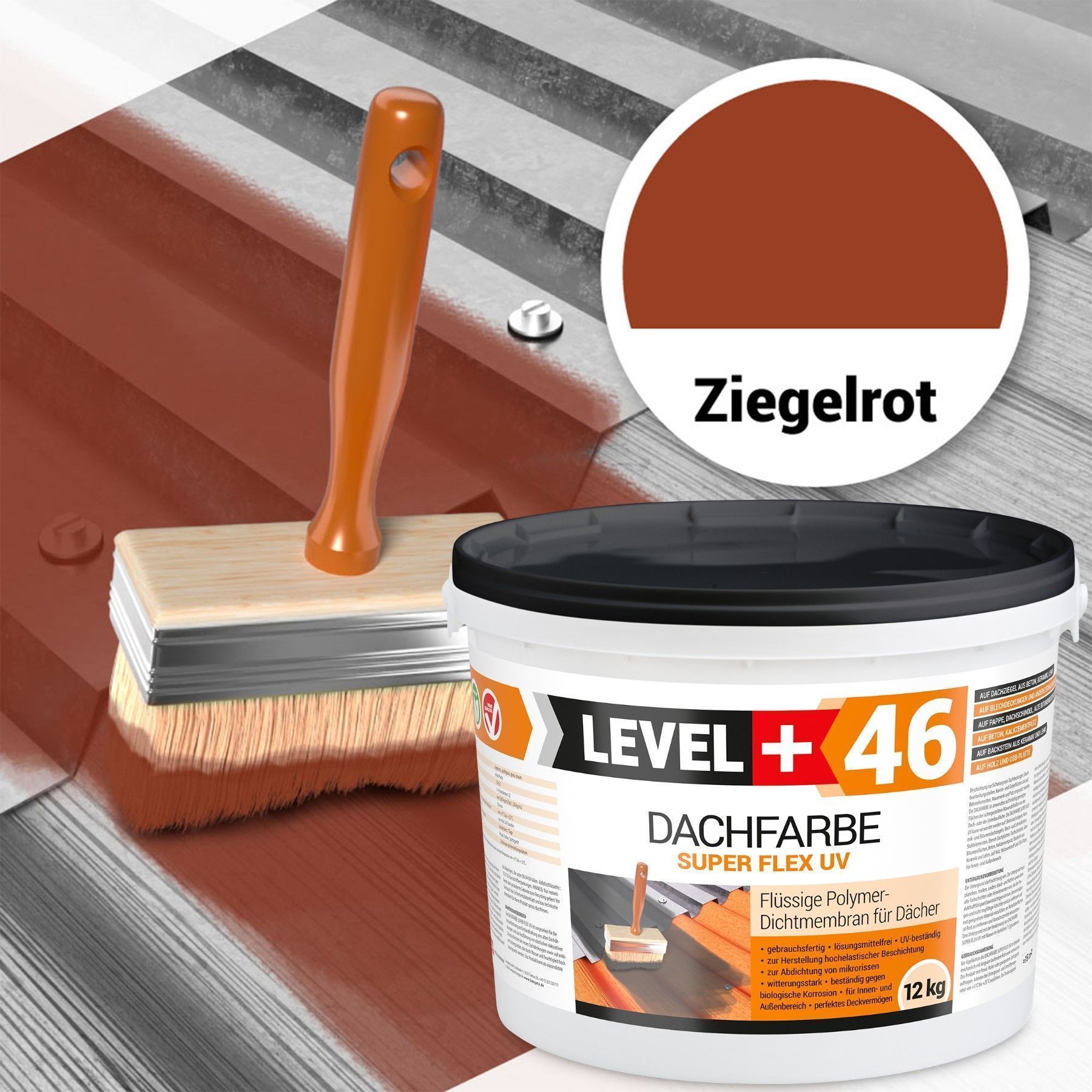 Dachfarbe 12kg Flexible Dachlack Sockelfarbe Ziegelrot + Farbroller 25cm Set L+46