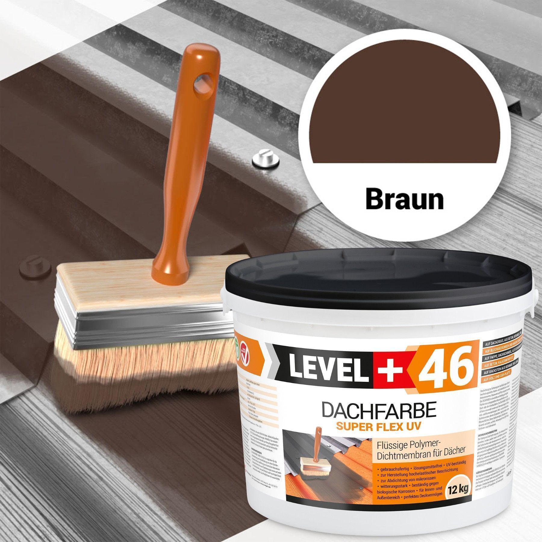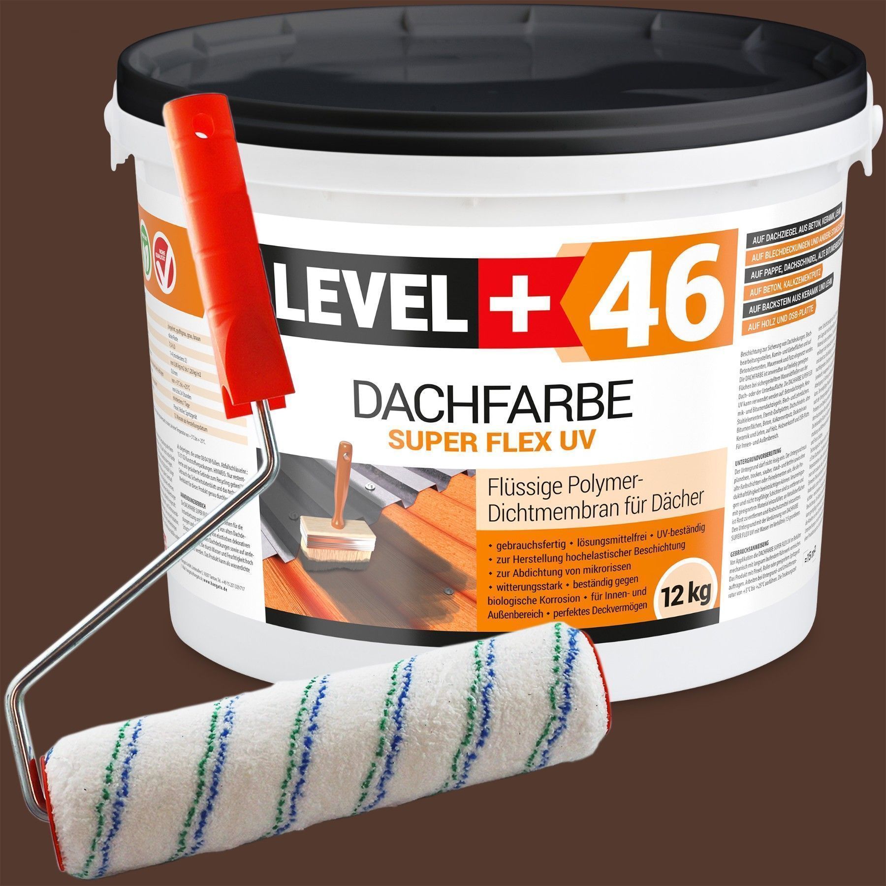 Dachfarbe 12kg Flexible Sockelfarbe Dachlack Braun + Farbroller 25cm Set L+46