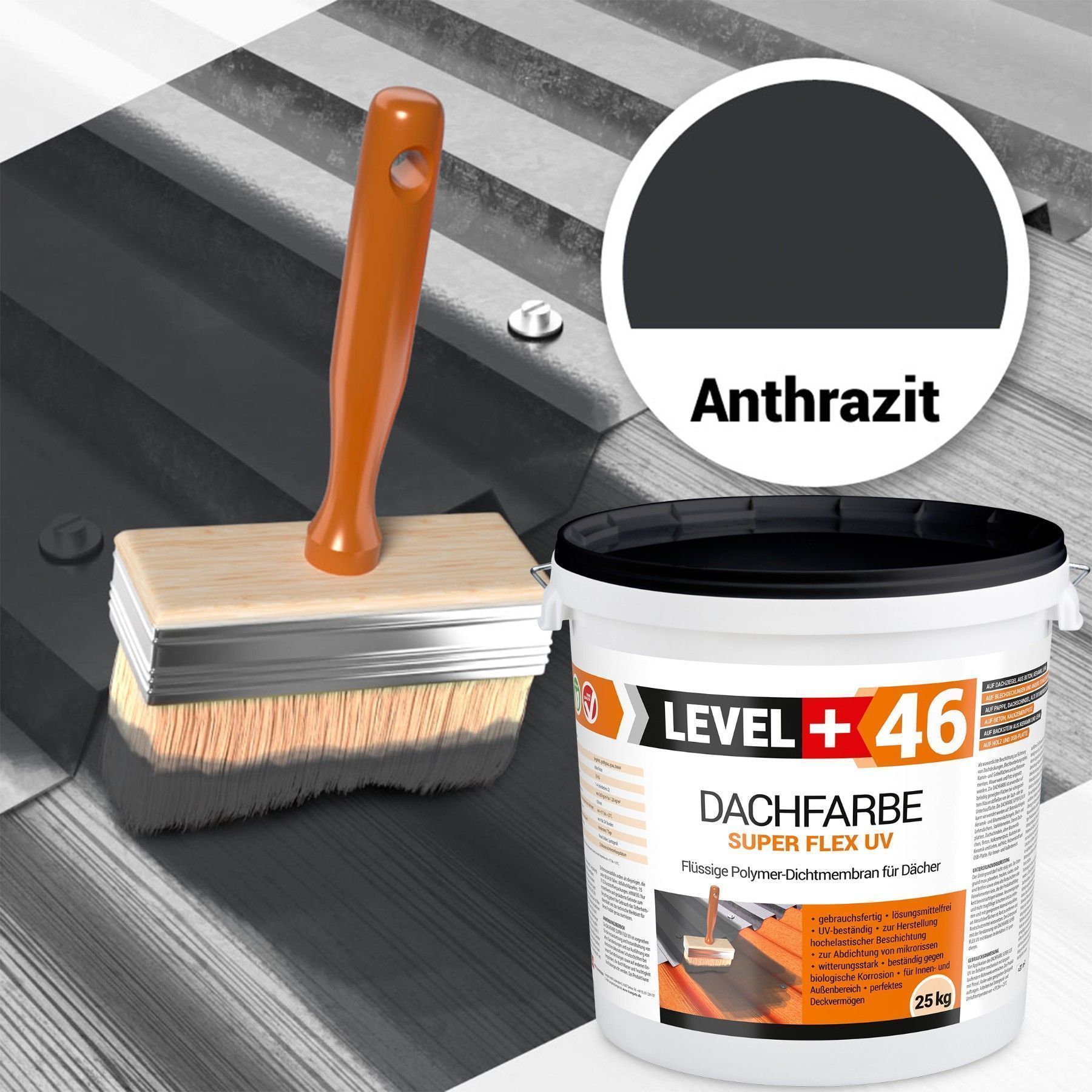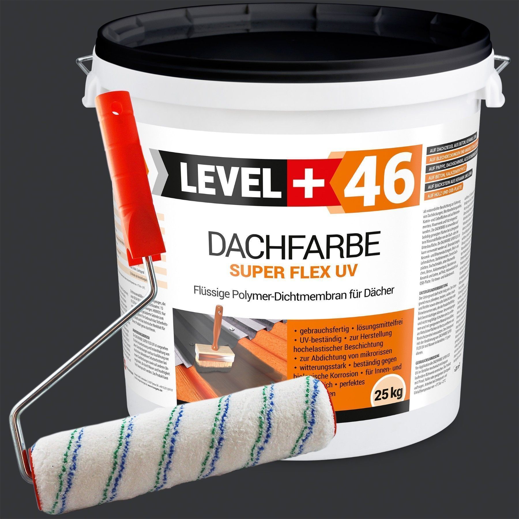 Dachfarbe 25kg Flexible Dachlack Sockelfarbe Anthrazit + Farbroller 25cm Set L+46