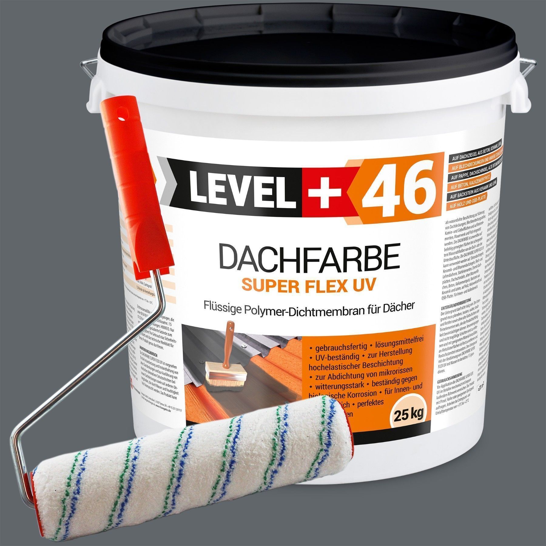 Dachfarbe 25kg Flexible Dachlack Sockelfarbe Steingrau + Farbroller 25cm Set L+46