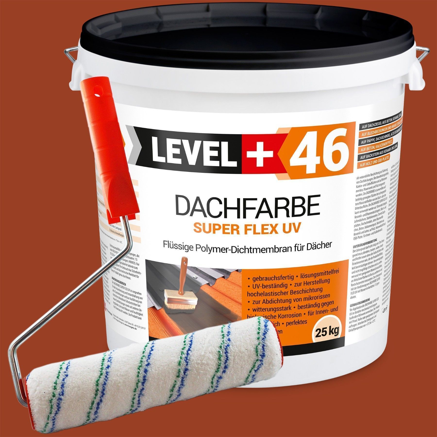 Dachfarbe 25kg Flexible Dachlack Sockelfarbe Ziegelrot + Farbroller 25cm Set L+46