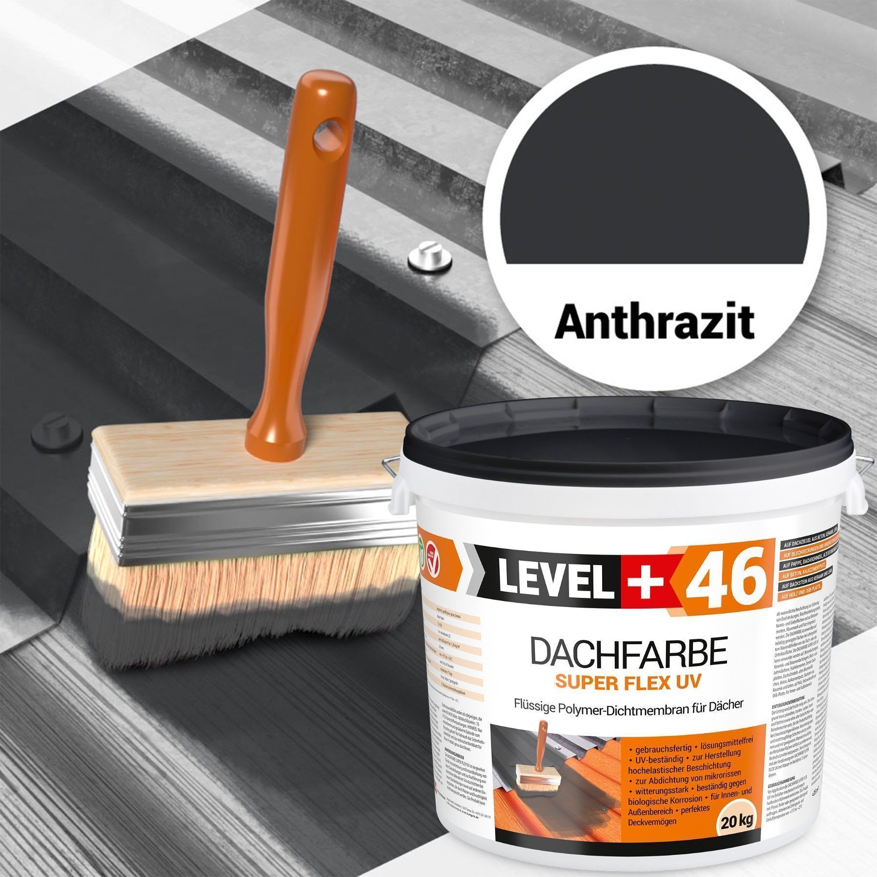 Dachfarbe 40kg Flexible Dachlack Sockelfarbe Anthrazit + Farbroller 25cm Set L+46