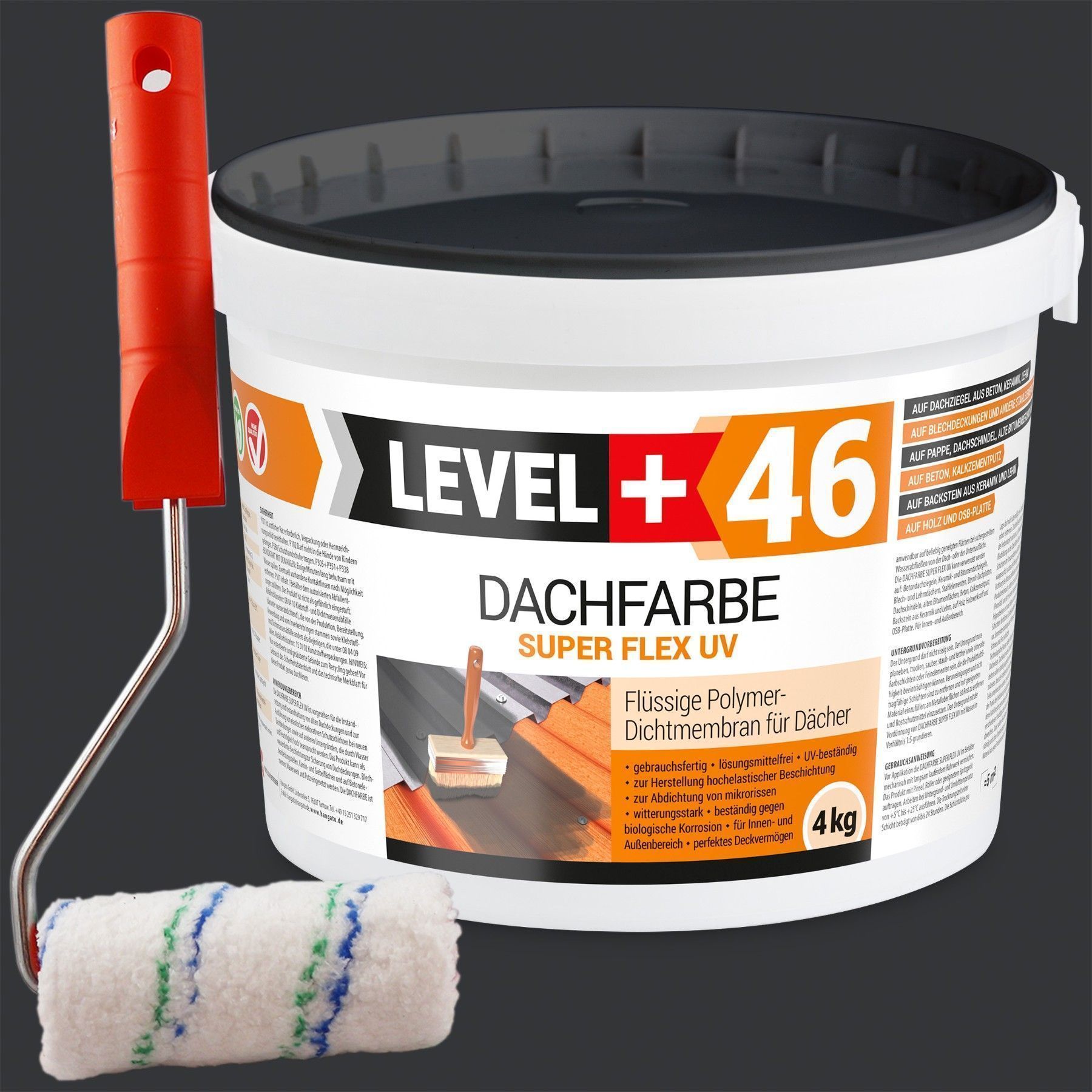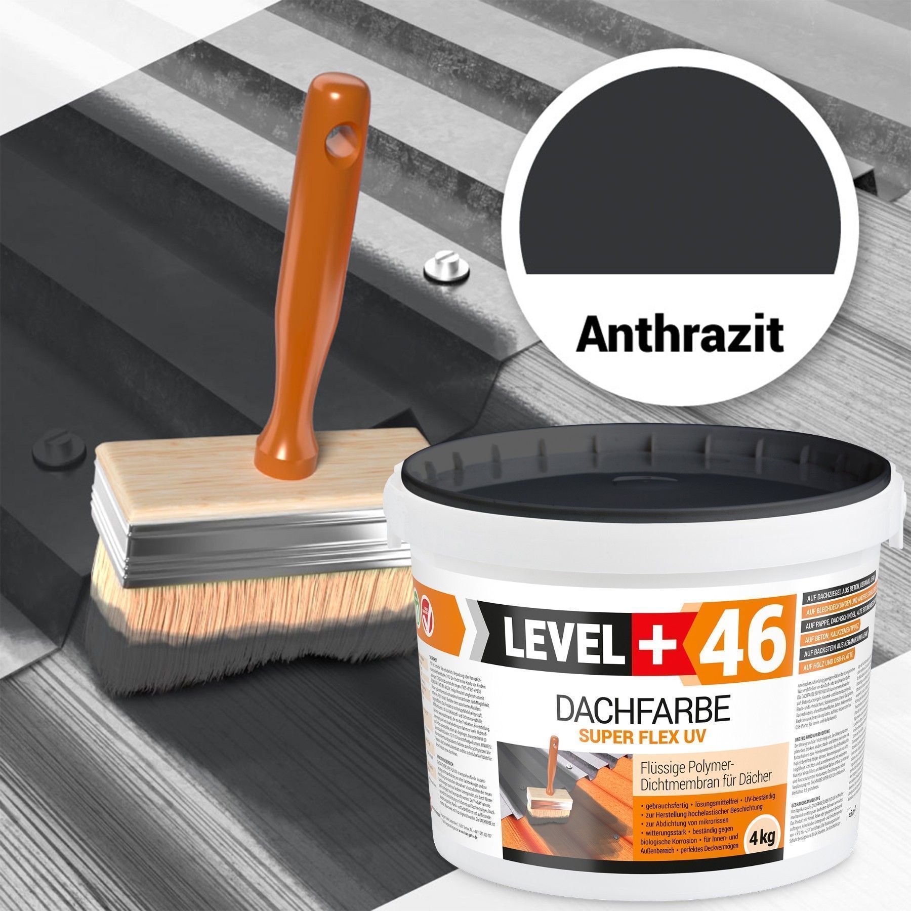 Dachfarbe 4kg Flexible Sockelfarbe Dachlack Anthrazit + Farbroller 10cm Set L+46