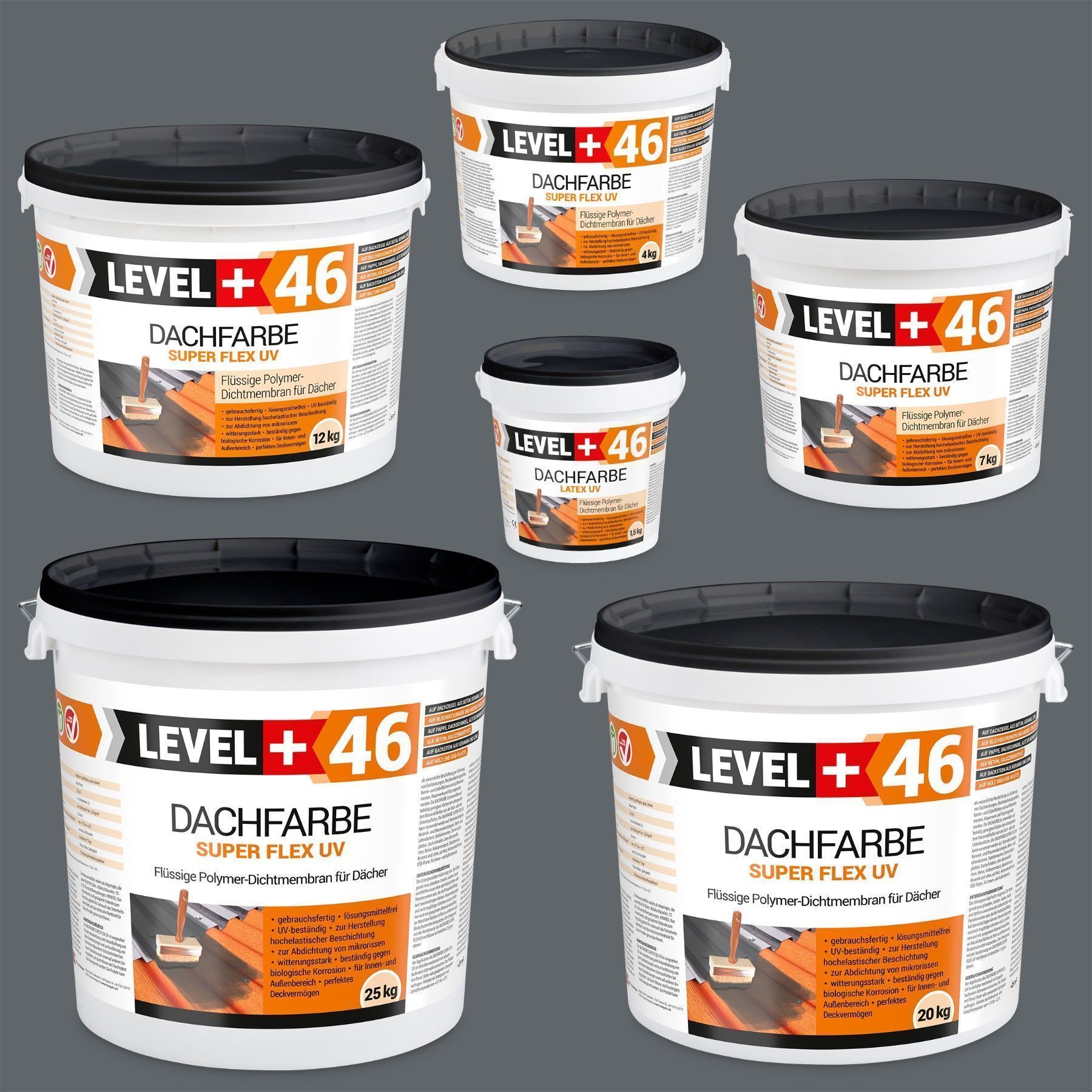 Dachfarbe 4kg Flexible Sockelfarbe Dachlack Steingrau + Farbroller 10cm Set L+46
