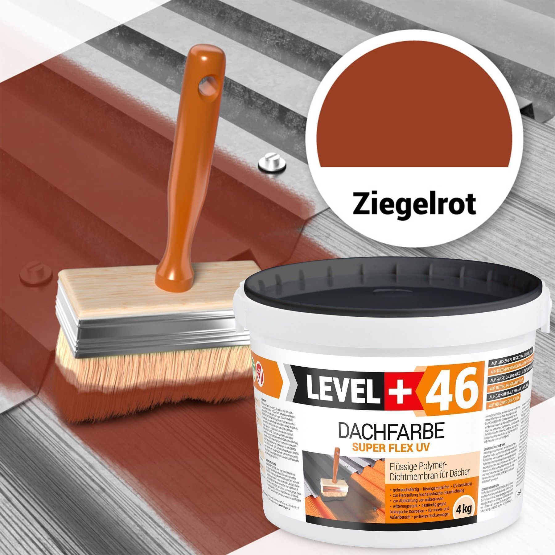 Dachfarbe 4kg Flexible Sockelfarbe Dachlack Ziegelrot + Farbroller 10cm Set L+46