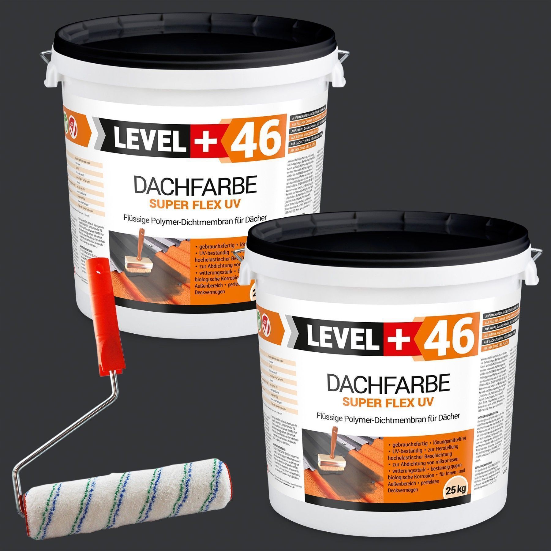 Dachfarbe 50kg Flexible Sockelfarbe Dachlack Anthrazit + Farbroller 25cm Set L+46
