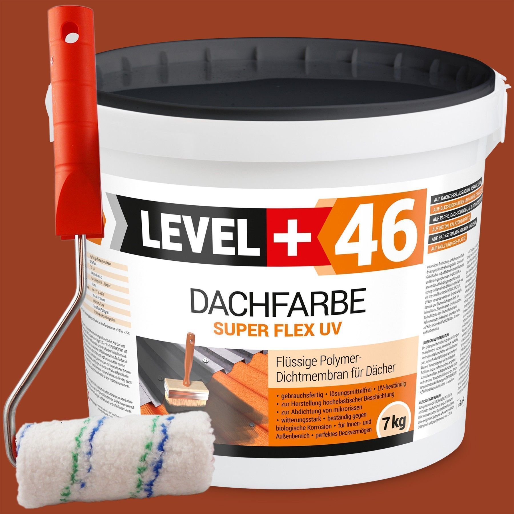 Dachfarbe 7kg Flexible Dachlack Sockelfarbe Ziegelrot + Farbroller 10cm Set L+46