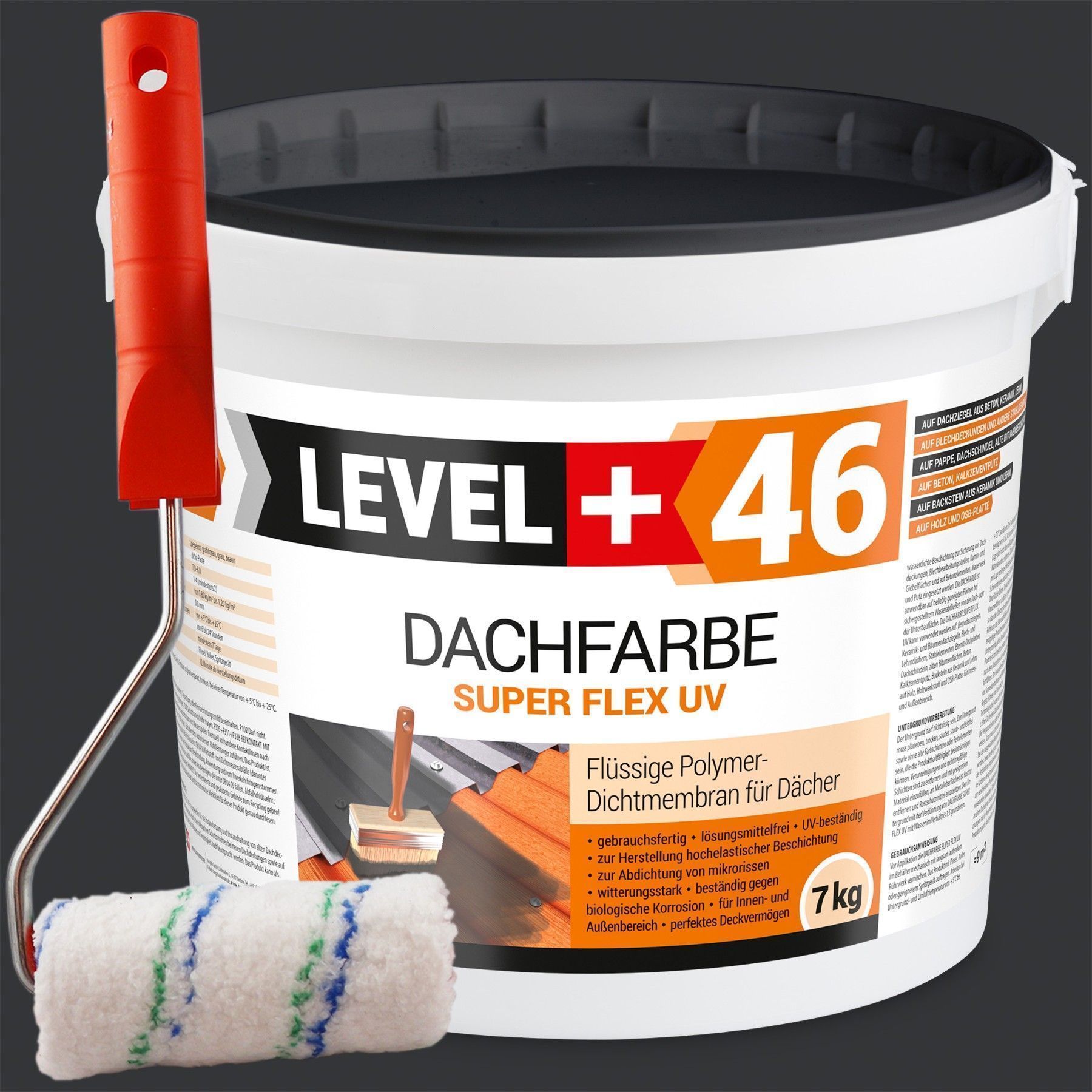 Dachfarbe 7kg Flexible Sockelfarbe Dachlack Anthrazit + Farbroller 10cm Set L+46