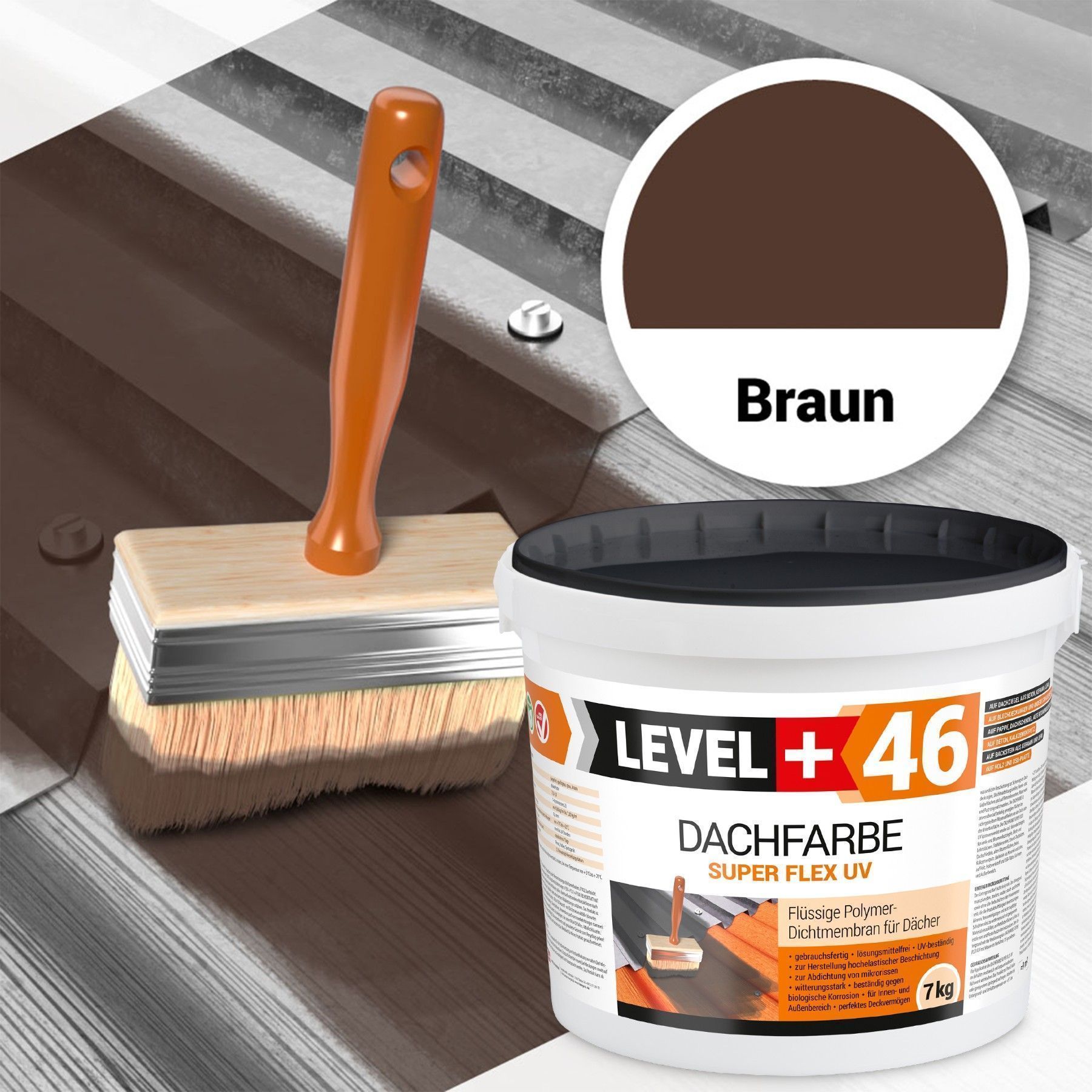 Dachfarbe 7kg Flexible Sockelfarbe Dachlack Braun + Farbroller 10cm Set L+46