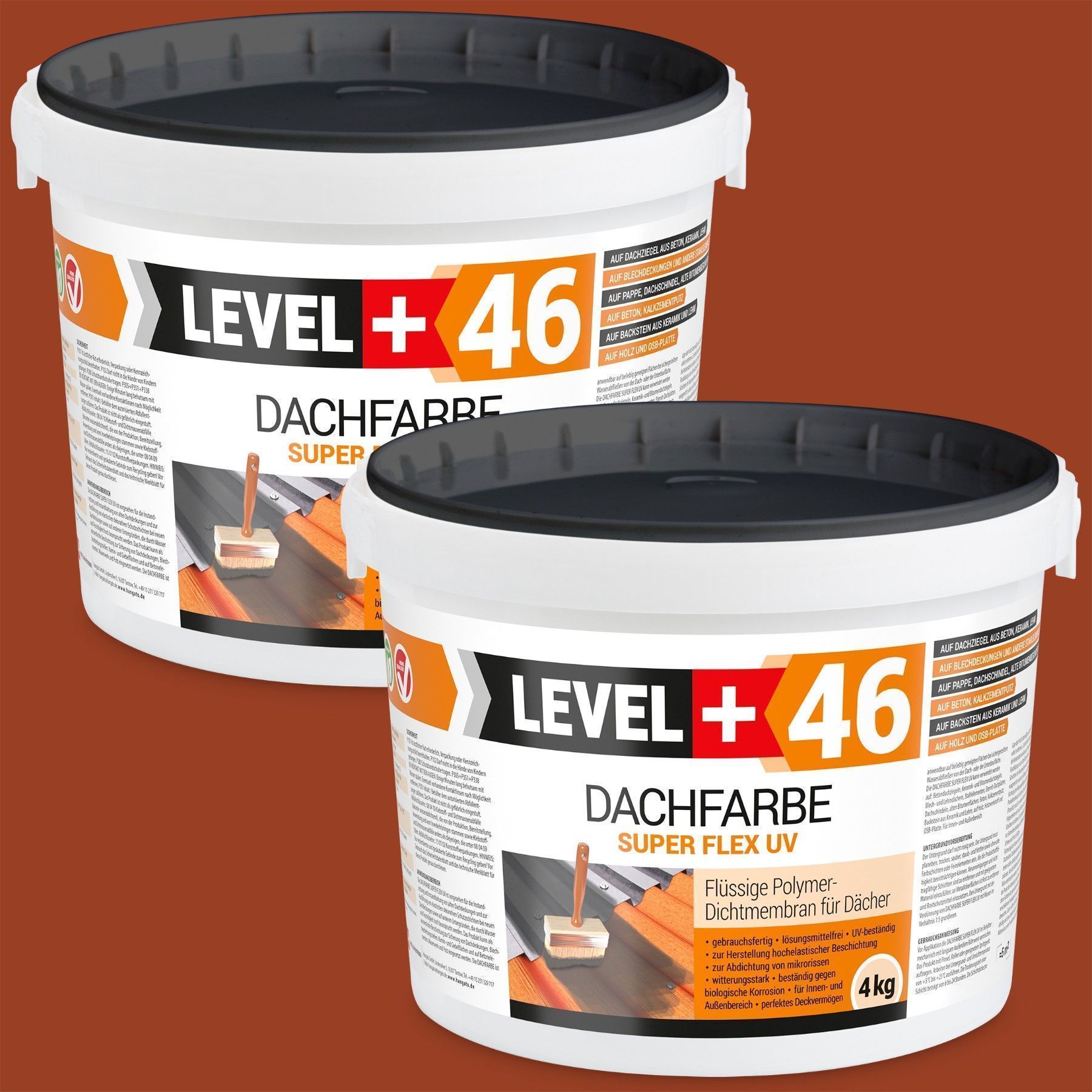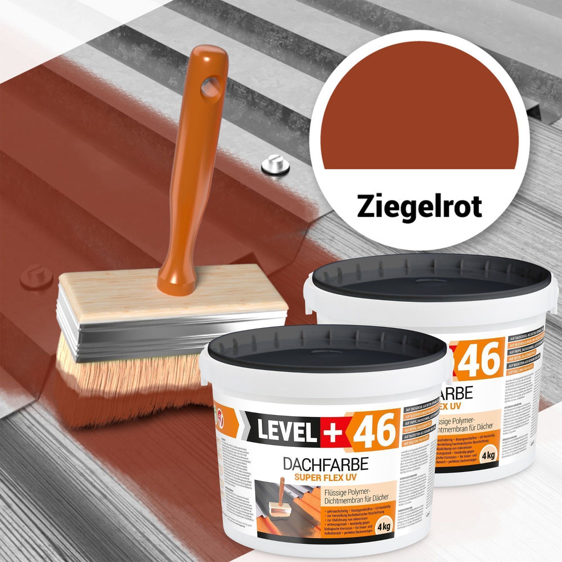 Dachfarbe Sockelfarbe 8,0kg Flexibler Dachlack UV-beständig Ziegelrot L+46
