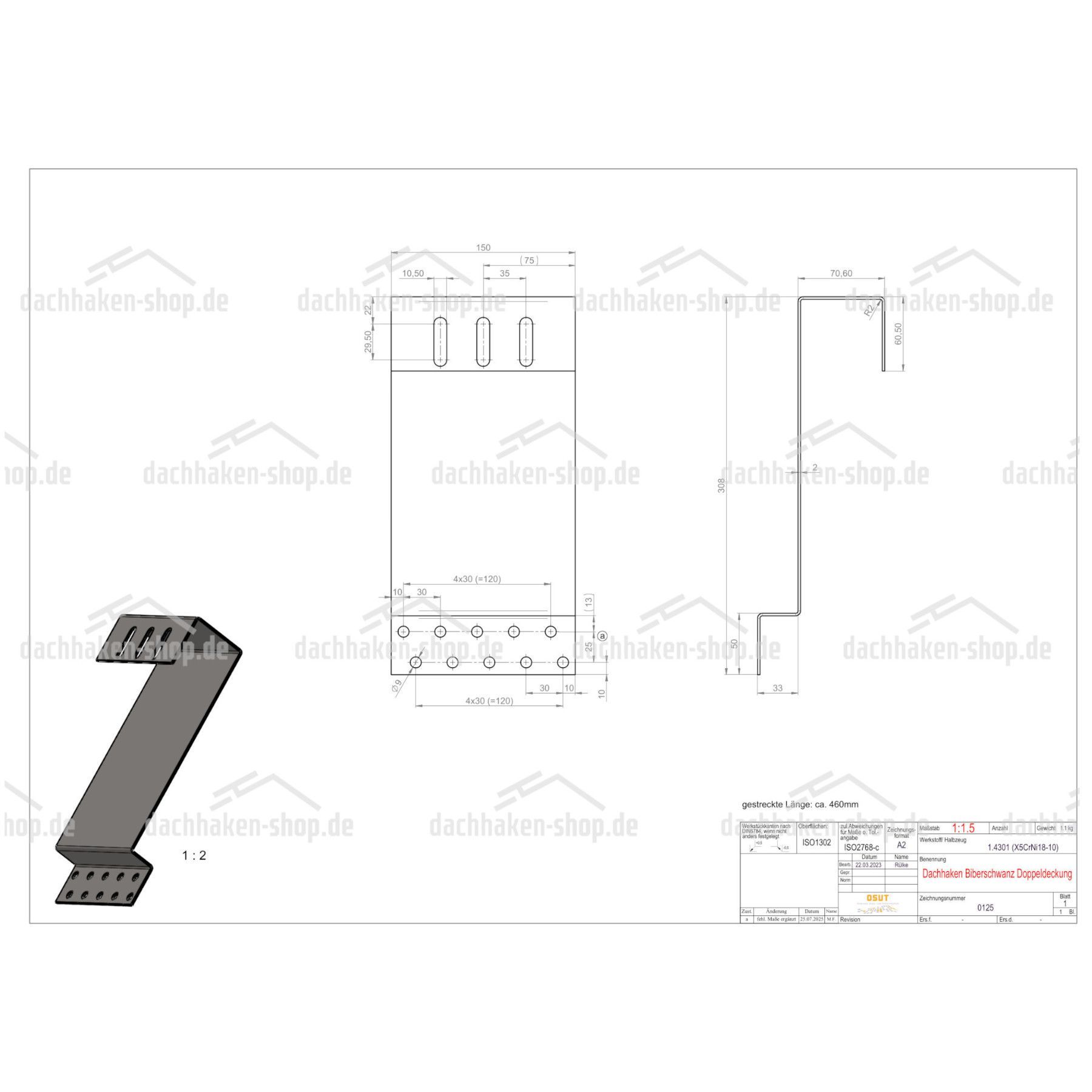 Dachhaken Biberschwanz Doppeldeckung breit 150 x 2mm Edelstahl 1.4301 (0125) 0% Mwst