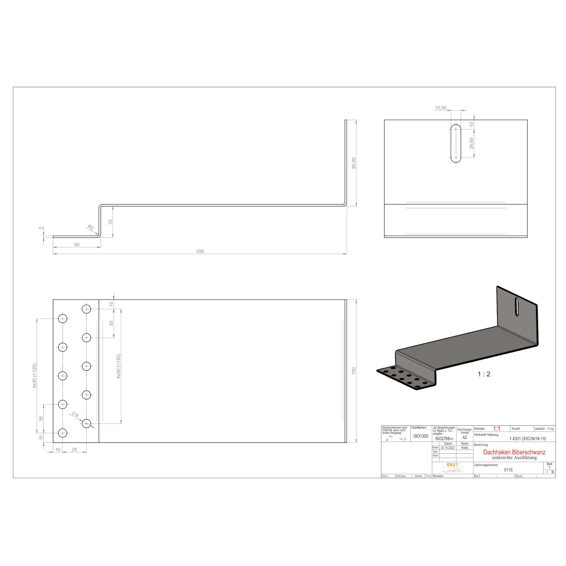 Dachhaken Biberschwanz Doppeldeckung Edelstahl senkrecht 1.4301 0% Mwst