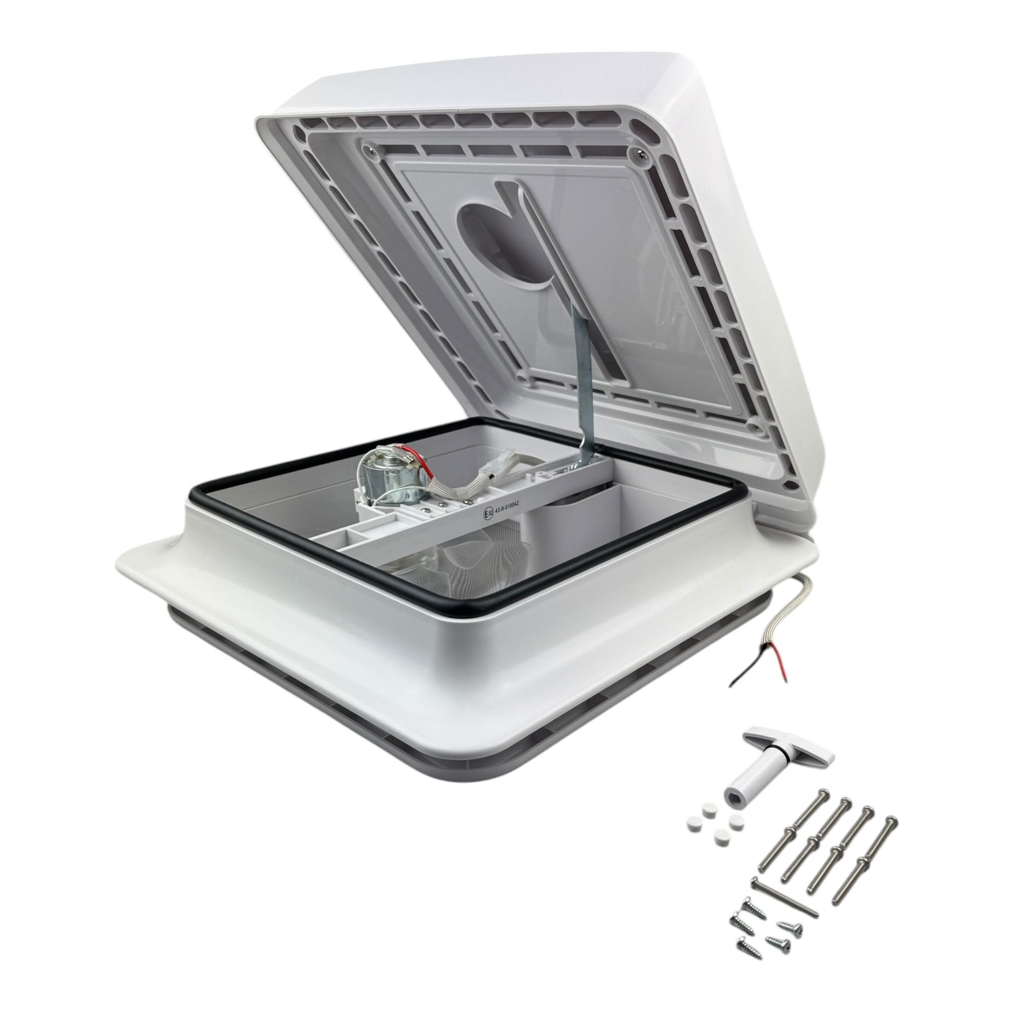 Dachluke mit 12V Lüfter 28x28cm weiss für Wohnmobil Wohnwagen Bad