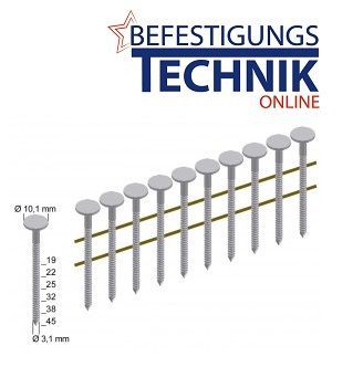 Dachpapp Nägel 3,1x22mm Ring verzinkt für Milwaukee Akku Nagler M18 FRCN45-0X / M18 F