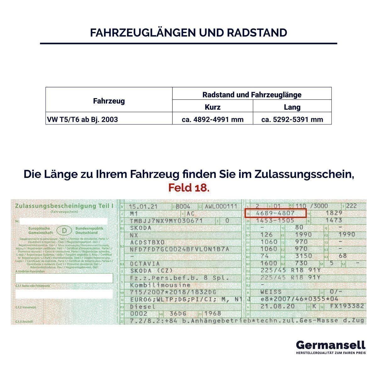 Dachreling passend für VW Camper California lang (T5 T6 und T6.1) ab Bj. 2003